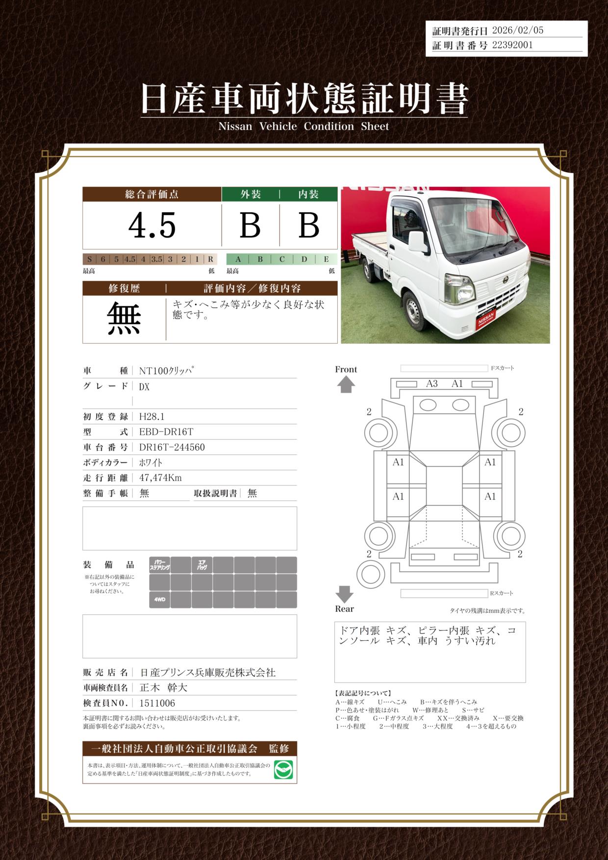 評価点イメージ : キズ・へこみ等が少なく良好な状態です。