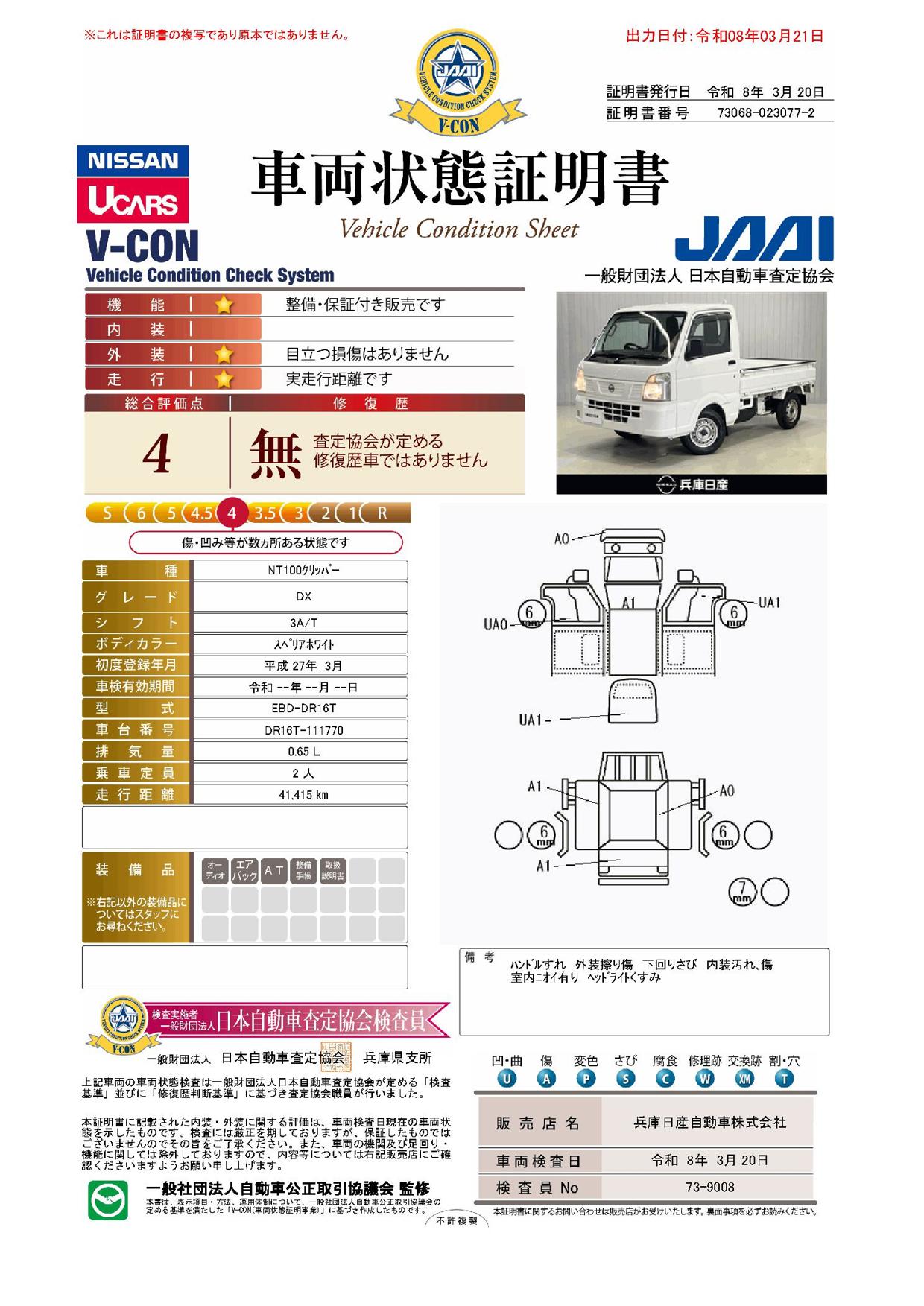 現状括弧書き内の年月まで車検有効期限が残っていますが、ご成約時に新しく車検を取り直します。なお取り直しの費用は車両価格に含まれています。