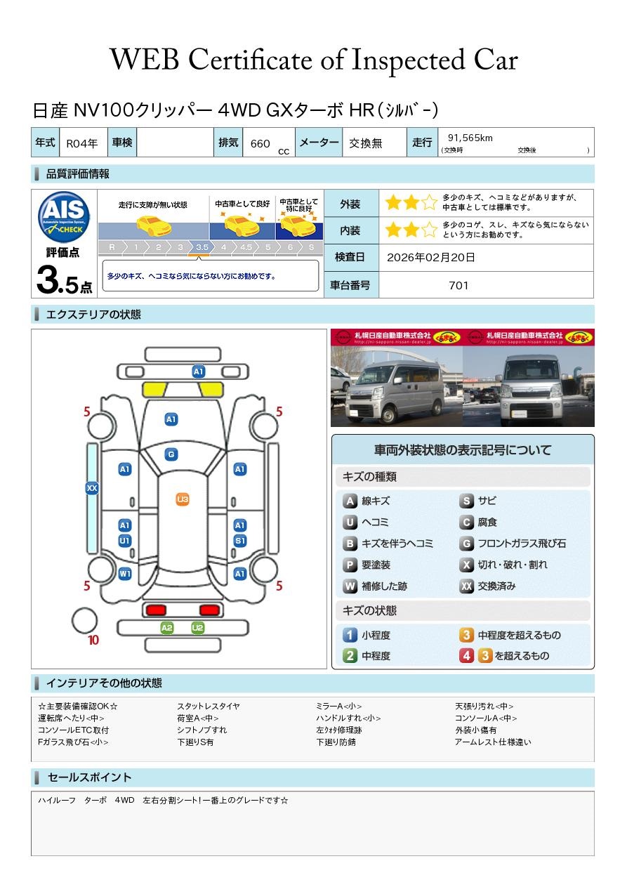 現状車検切れの状態ですが、ご成約時に新しく車検を実施します。車検費用は車両価格に含まれています。