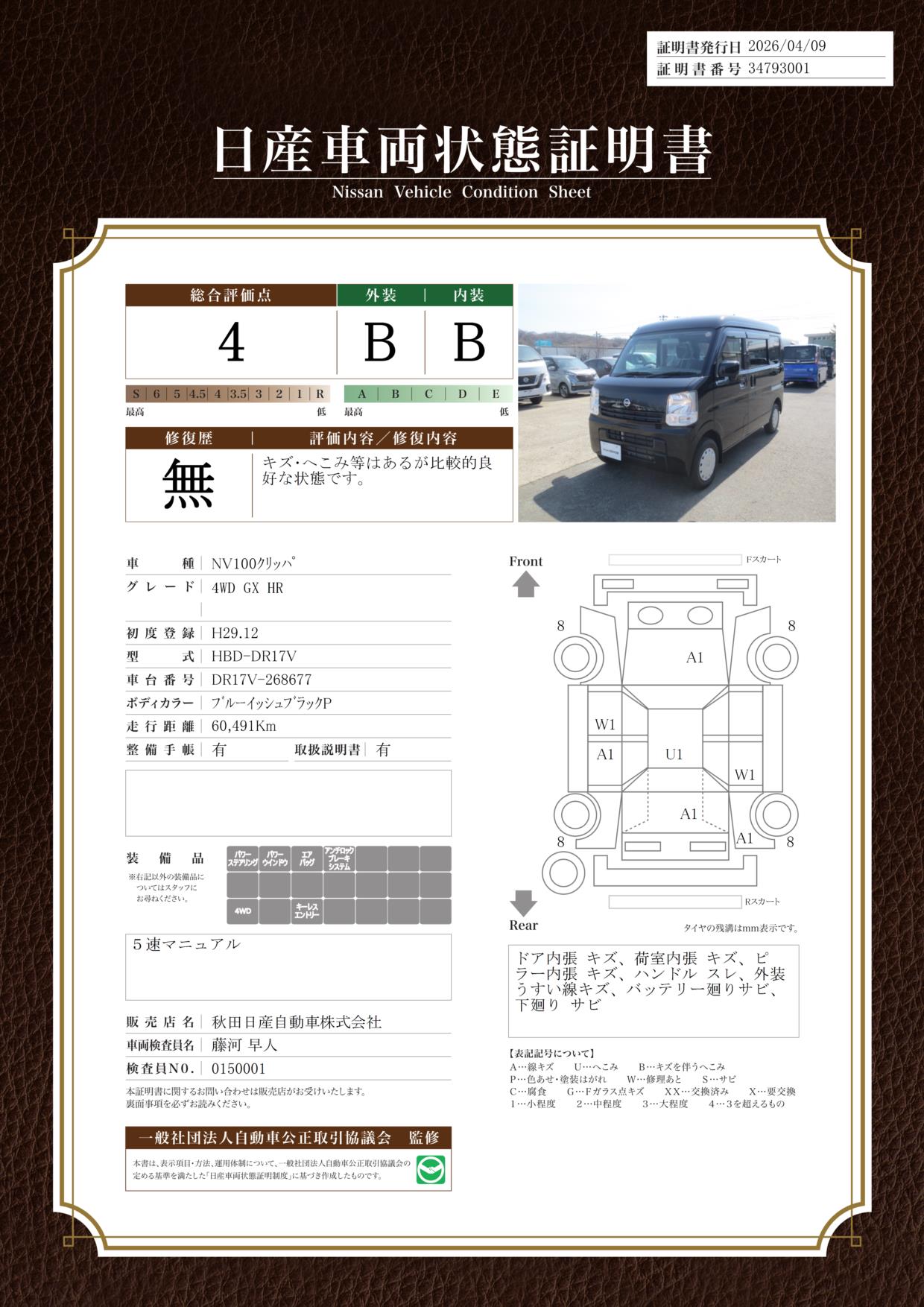 現状括弧書き内の年月まで車検有効期限が残っていますが、ご成約時に新しく車検を取り直します。なお取り直しの費用は車両価格に含まれています。
