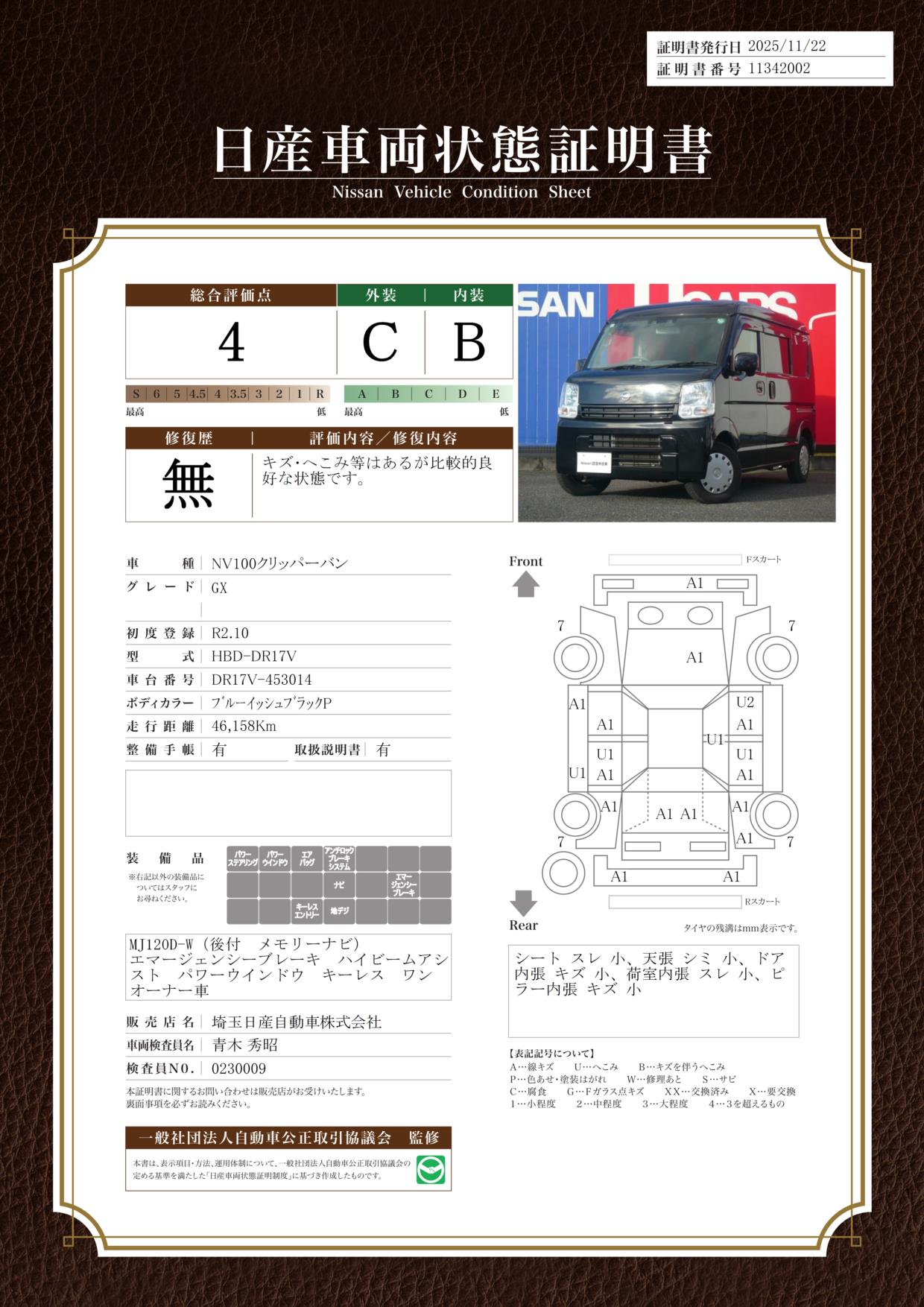 現状車検切れの状態ですが、ご成約時に新しく車検を実施します。車検費用は車両価格に含まれています。