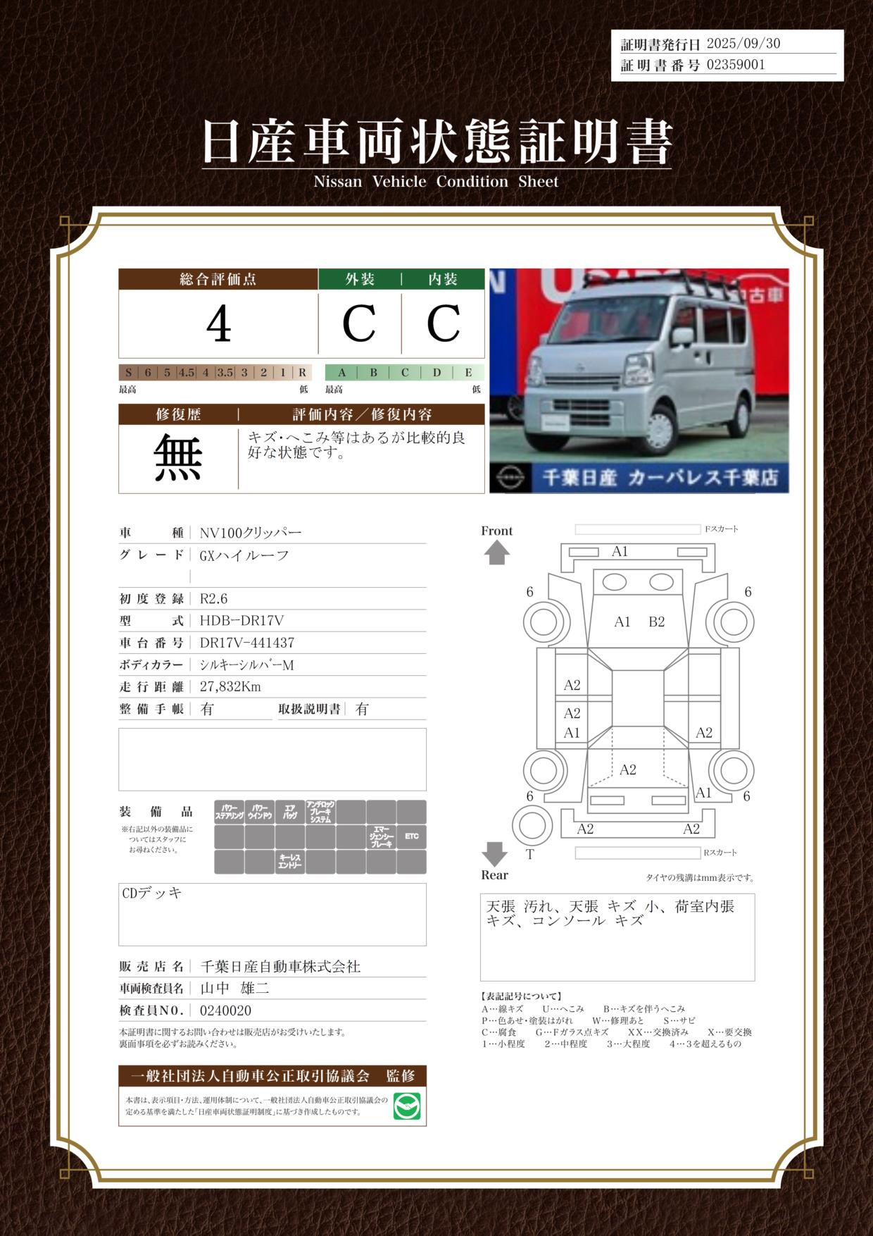 評価点イメージ : キズ・へこみ等はあるが比較的良好な状態です。