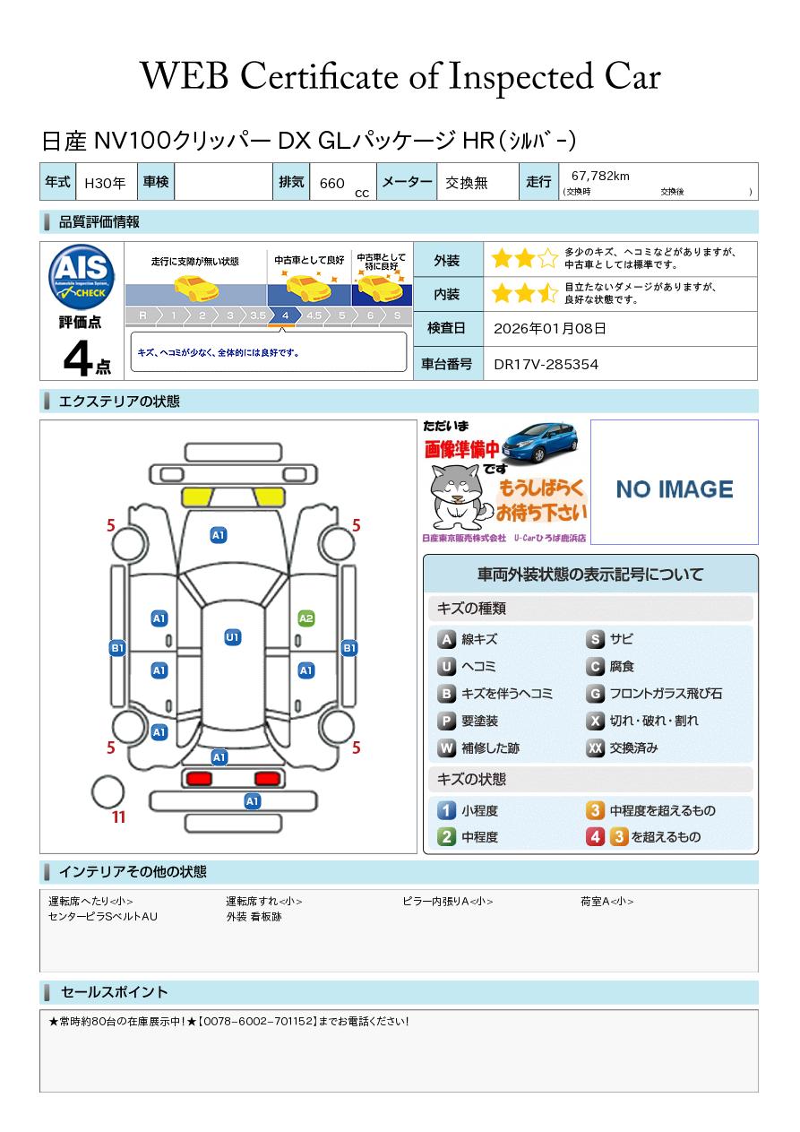 現状括弧書き内の年月まで車検有効期限が残っていますが、ご成約時に新しく車検を取り直します。なお取り直しの費用は車両価格に含まれています。