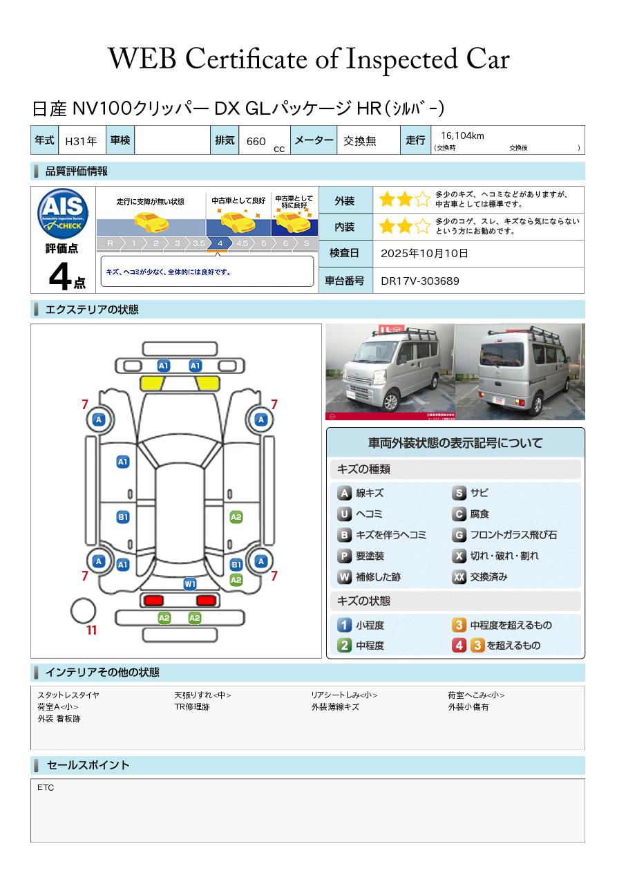 現状括弧書き内の年月まで車検有効期限が残っていますが、ご成約時に新しく車検を取り直します。なお取り直しの費用は車両価格に含まれています。