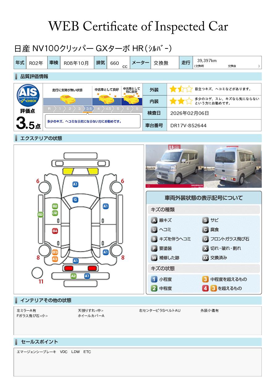 現状括弧書き内の年月まで車検有効期限が残っていますが、ご成約時に新しく車検を取り直します。なお取り直しの費用は車両価格に含まれています。