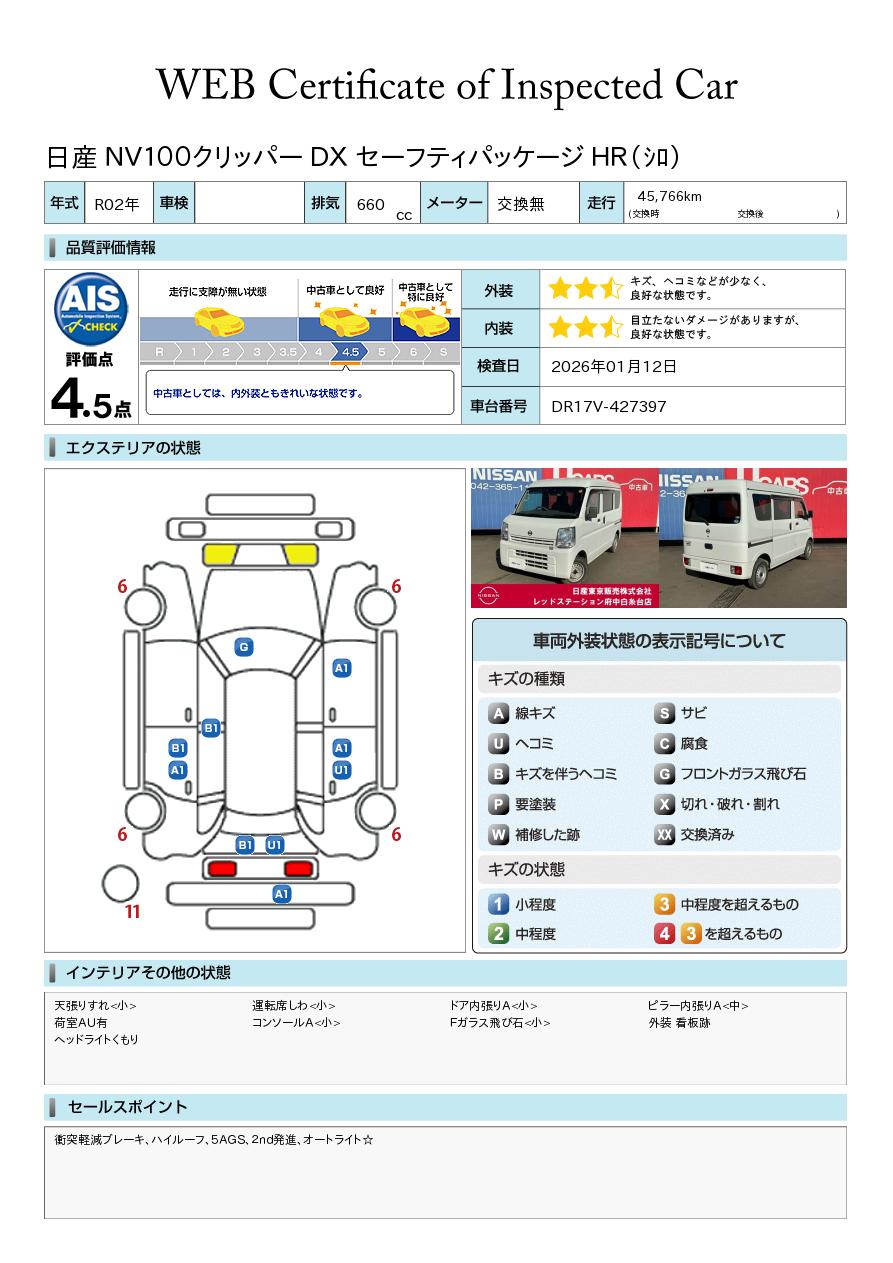 現状括弧書き内の年月まで車検有効期限が残っていますが、ご成約時に新しく車検を取り直します。なお取り直しの費用は車両価格に含まれています。