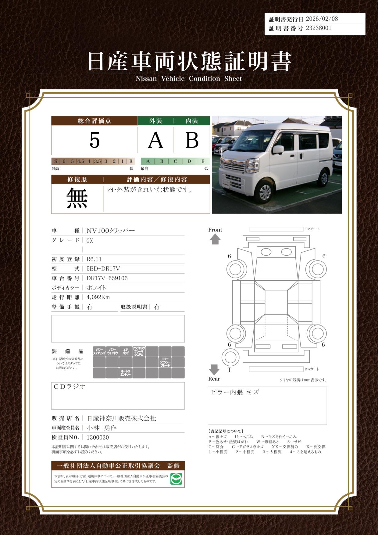 評価機関 : 日産車両状態証明