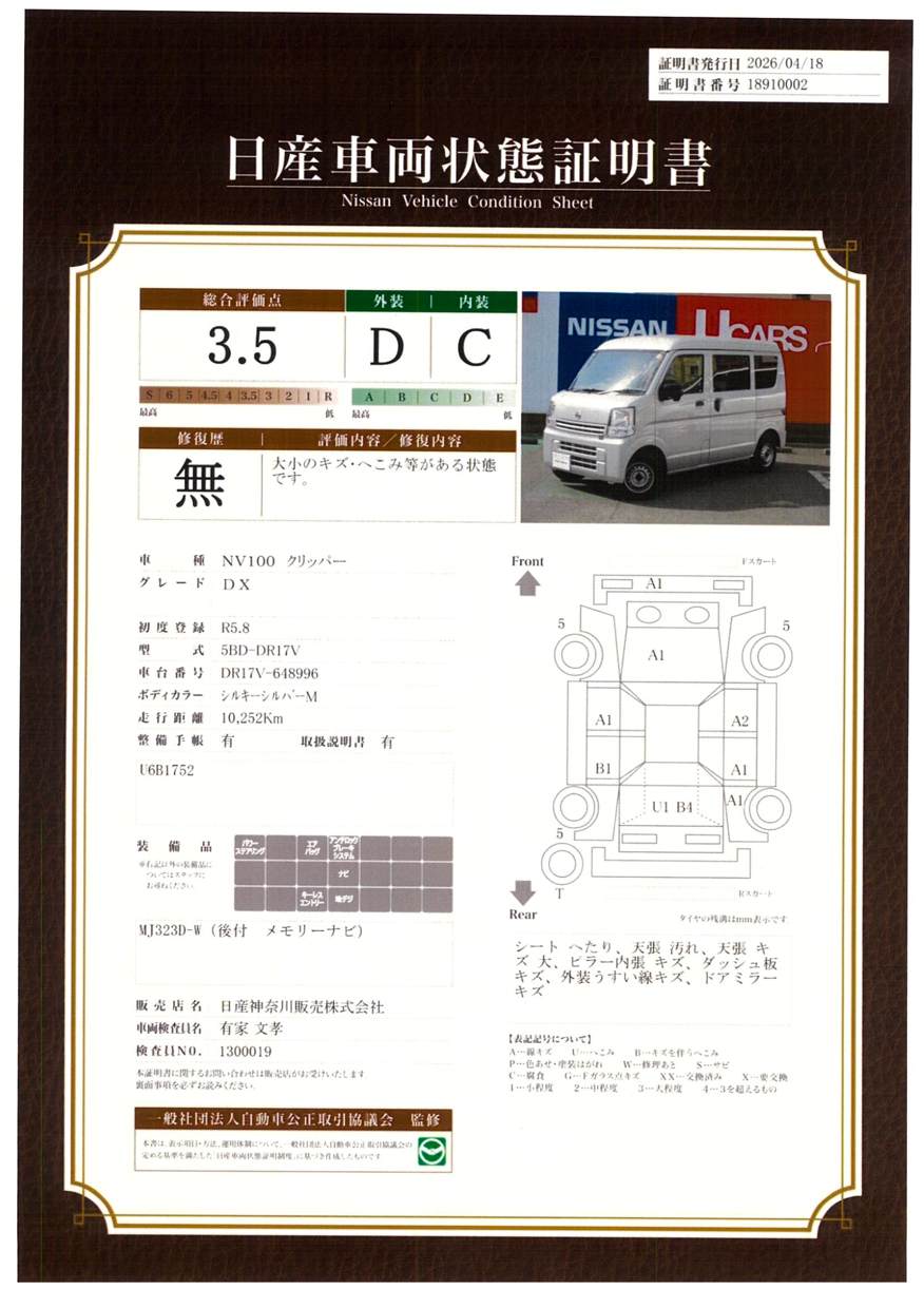 現状括弧書き内の年月まで車検有効期限が残っていますが、ご成約時に新しく車検を取り直します。なお取り直しの費用は車両価格に含まれています。