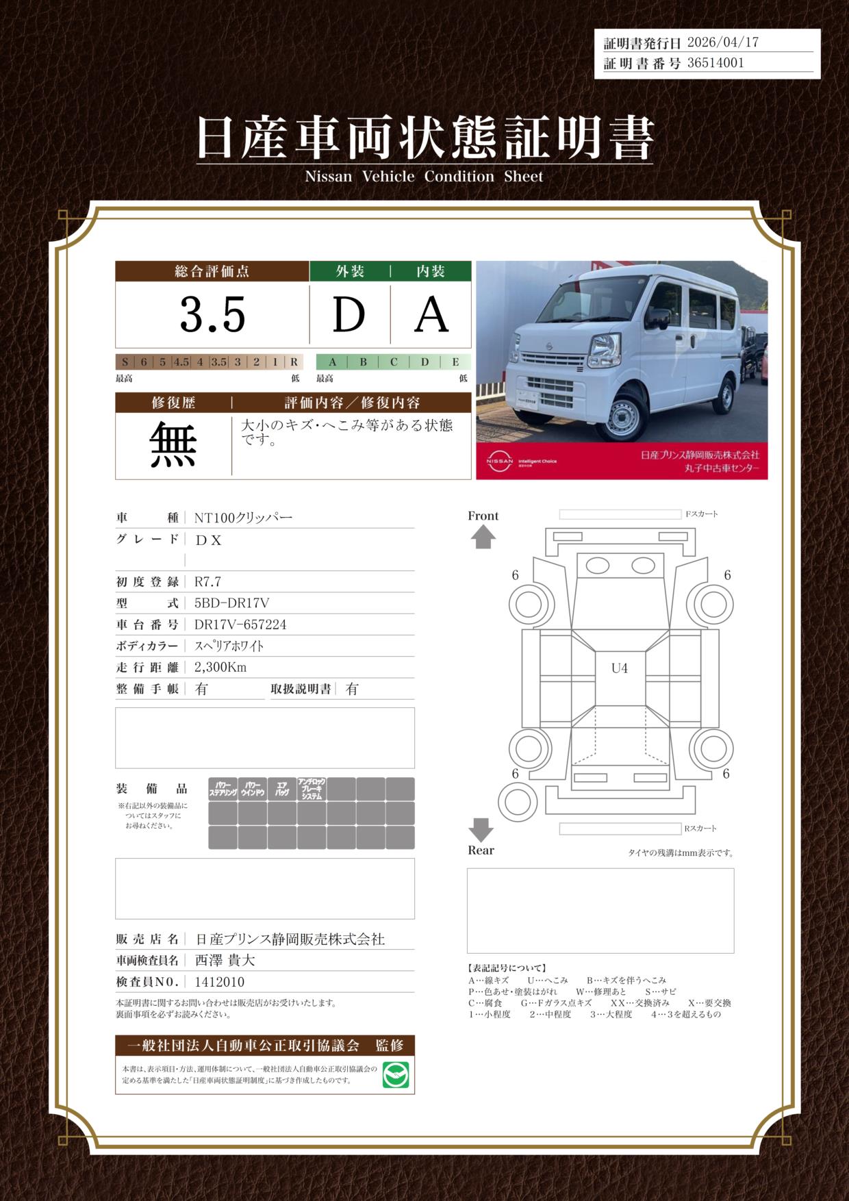 日産車両状態証明