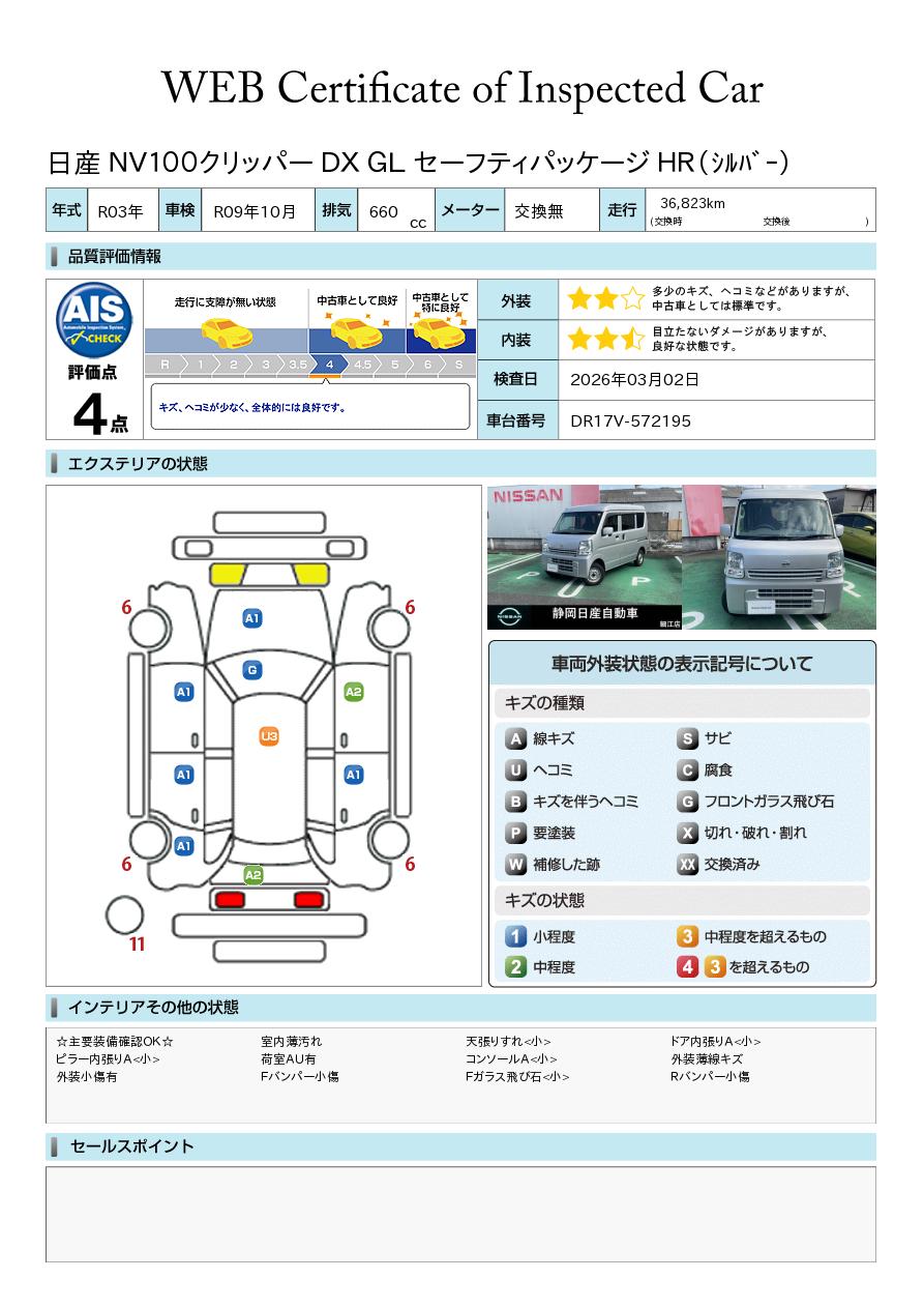 NV100クリッパー 660cc 660 DX GLパッケージ ハイルーフ 当社代車使用車両
