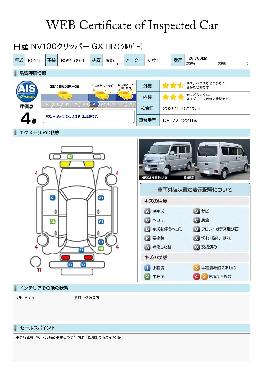 現状車検切れの状態ですが、ご成約時に新しく車検を実施します。車検費用は車両価格に含まれています。