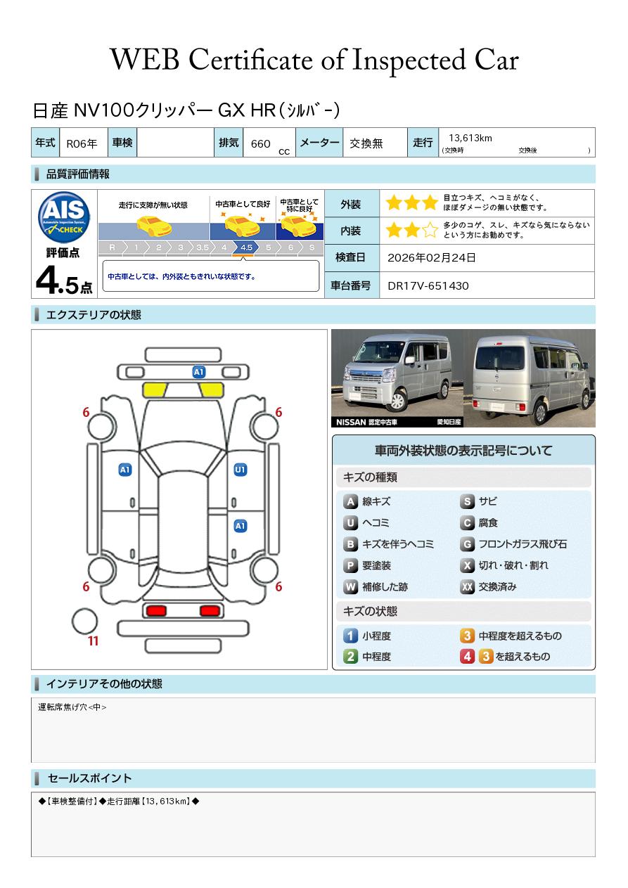 「車両状態証明書」は、査定協会監修のプロの検査員が公正かつ確かな基準で検査した”安心の証”です。