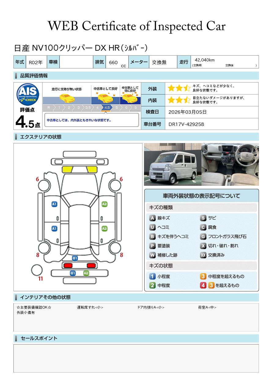 現状括弧書き内の年月まで車検有効期限が残っていますが、ご成約時に新しく車検を取り直します。なお取り直しの費用は車両価格に含まれています。