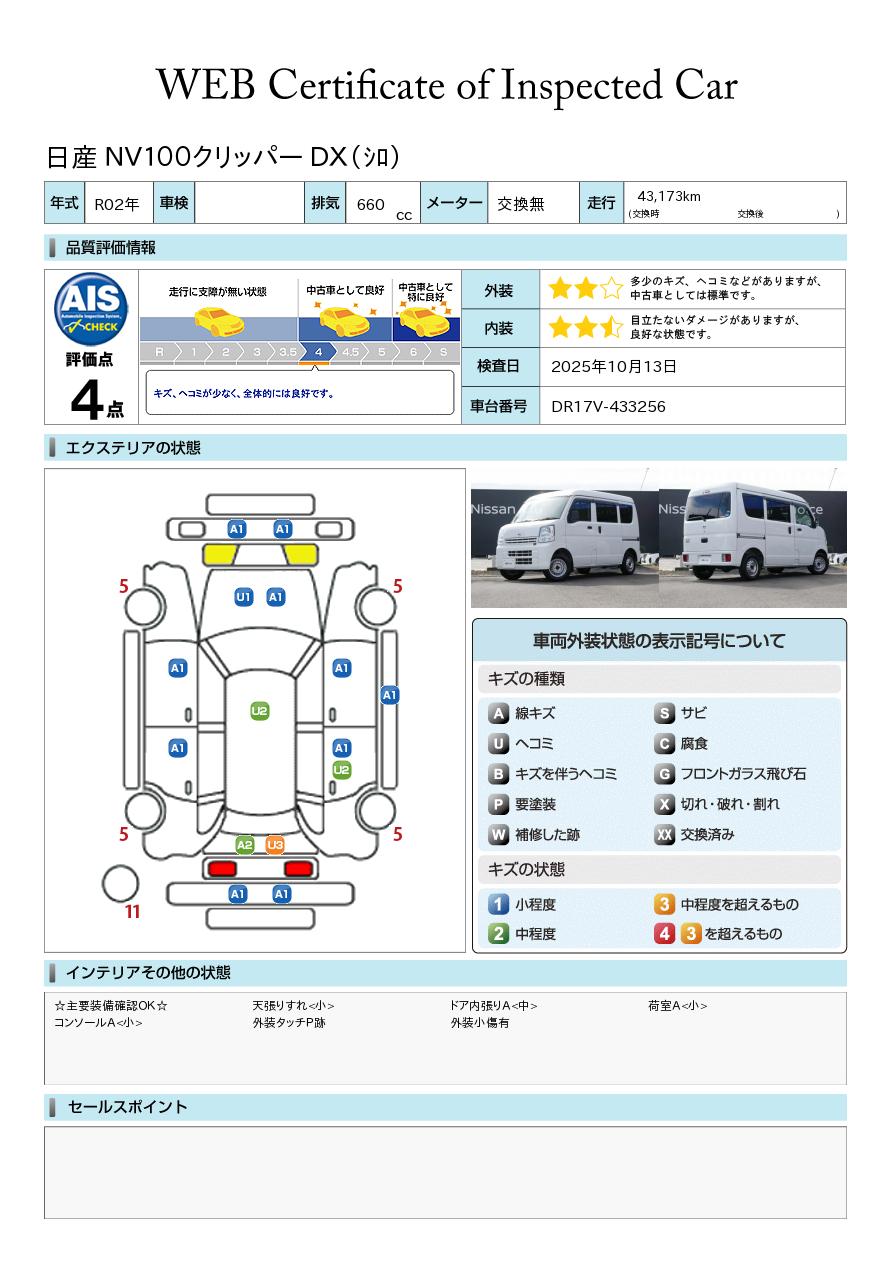 現状車検切れの状態ですが、ご成約時に新しく車検を実施します。車検費用は車両価格に含まれています。