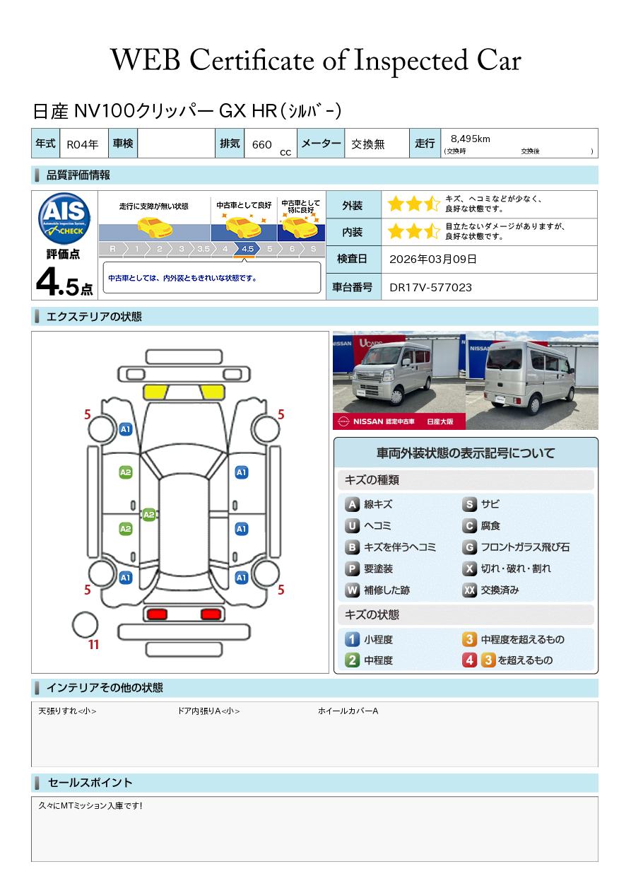 「車両状態証明書」は、査定協会監修のプロの検査員が公正かつ確かな基準で検査した”安心の証”です。