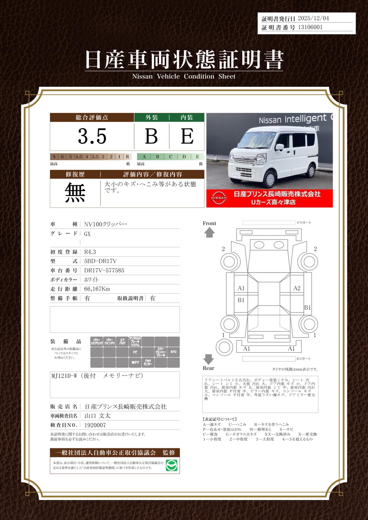 NV100クリッパー 660cc 660 GX ハイルーフ インテリジェンントエマージェンシーブレー