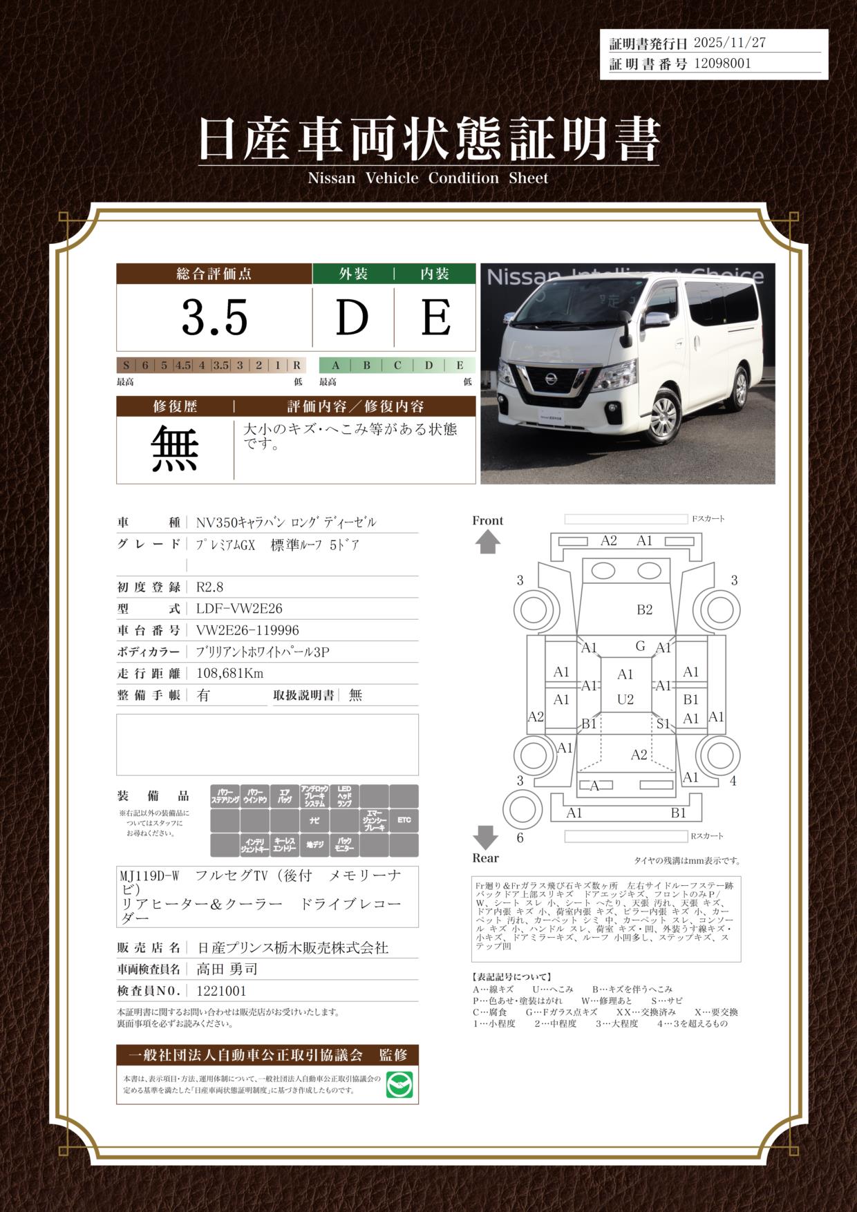 日産車両状態証明