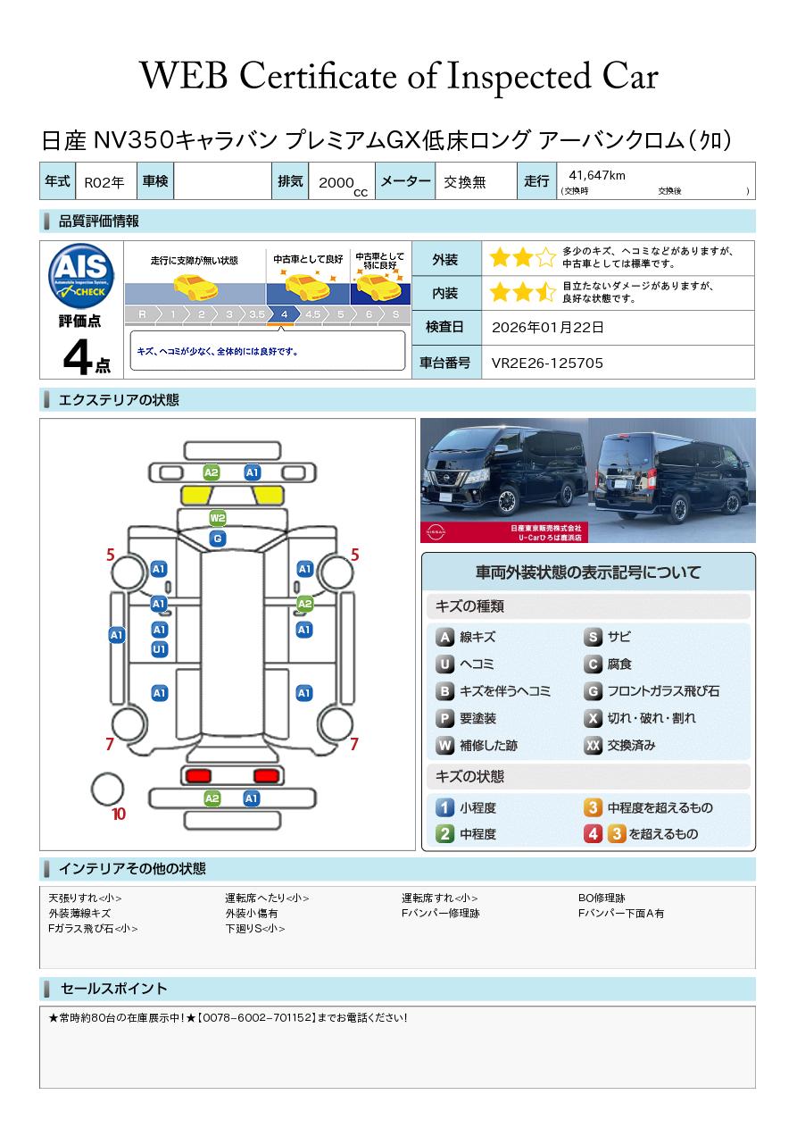 現状括弧書き内の年月まで車検有効期限が残っていますが、ご成約時に新しく車検を取り直します。なお取り直しの費用は車両価格に含まれています。