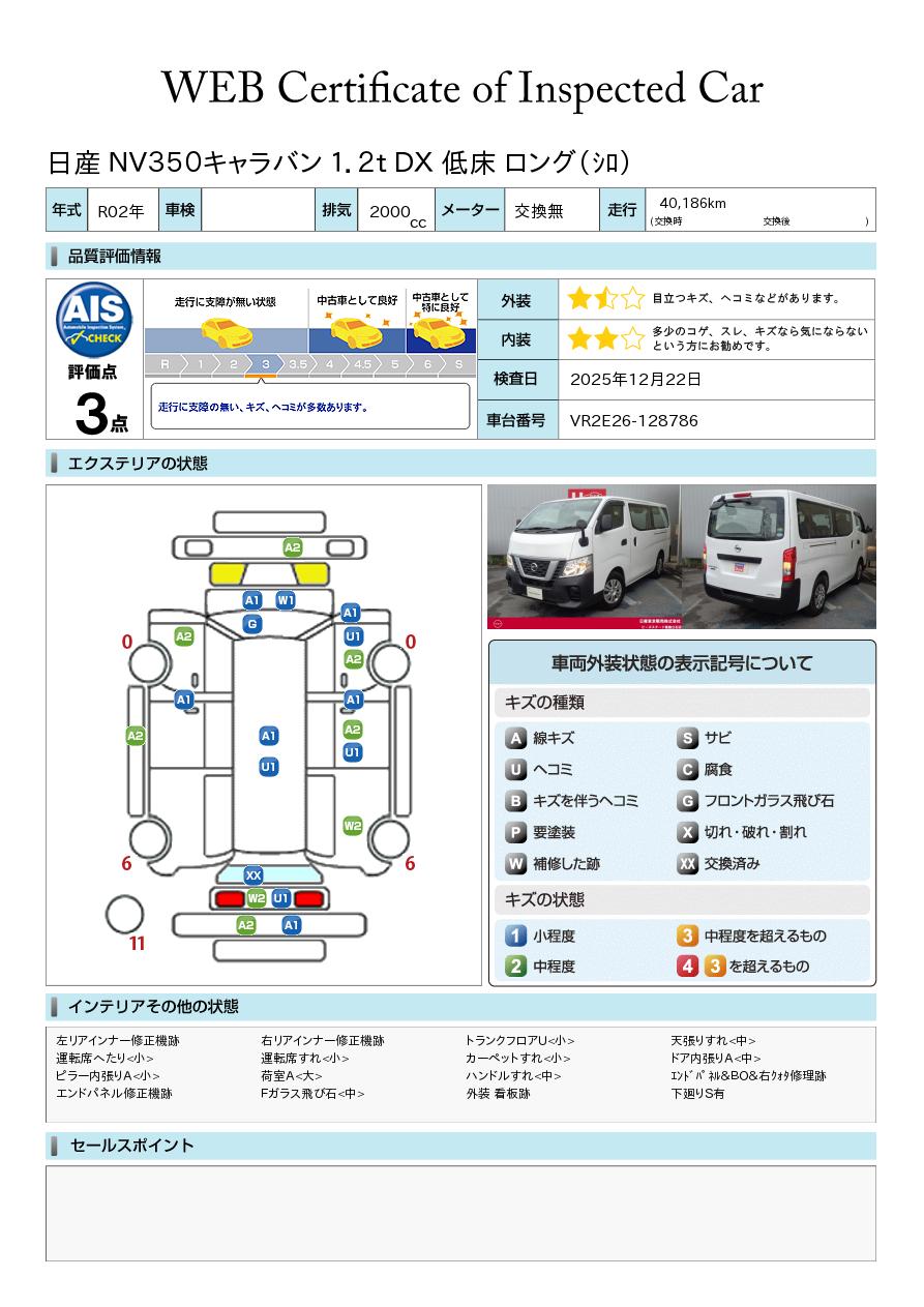 現状括弧書き内の年月まで車検有効期限が残っていますが、ご成約時に新しく車検を取り直します。なお取り直しの費用は車両価格に含まれています。