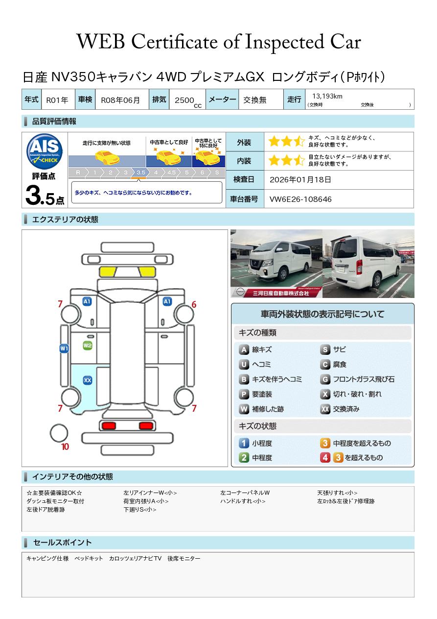 現状括弧書き内の年月まで車検有効期限が残っていますが、ご成約時に新しく車検を取り直します。なお取り直しの費用は車両価格に含まれています。