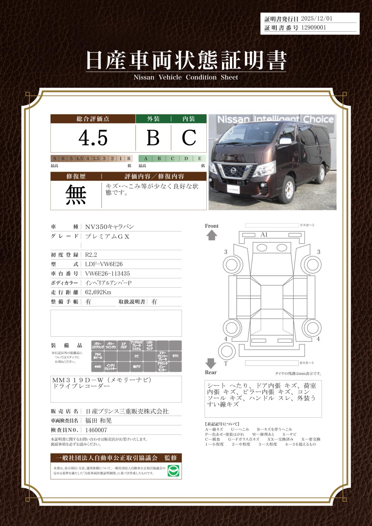 R2年式キャラバンプレミアムGXのブラウンが入庫しました。