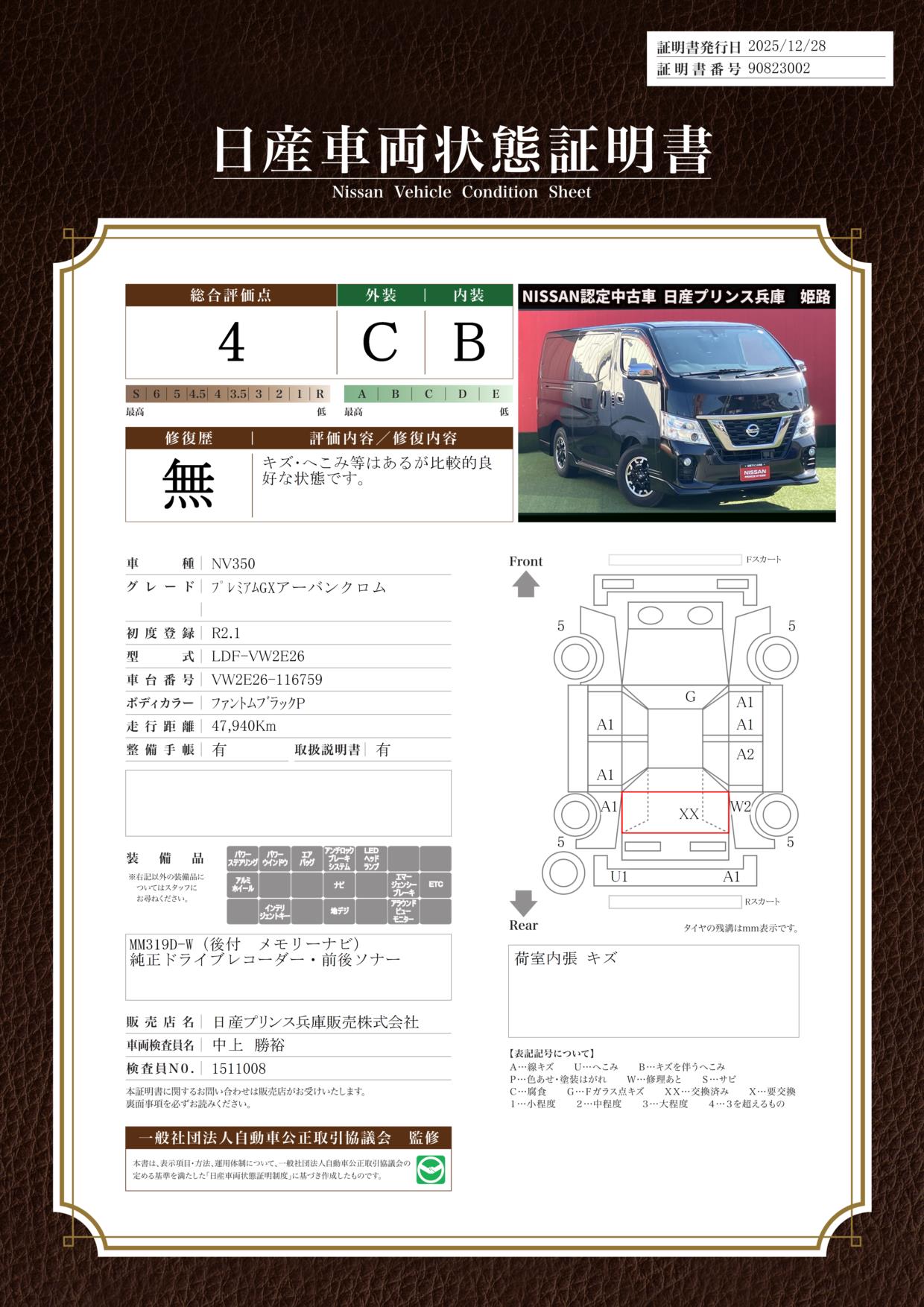現状車検切れの状態であり、車検費用は車両価格とは別でご負担いただく必要があります。