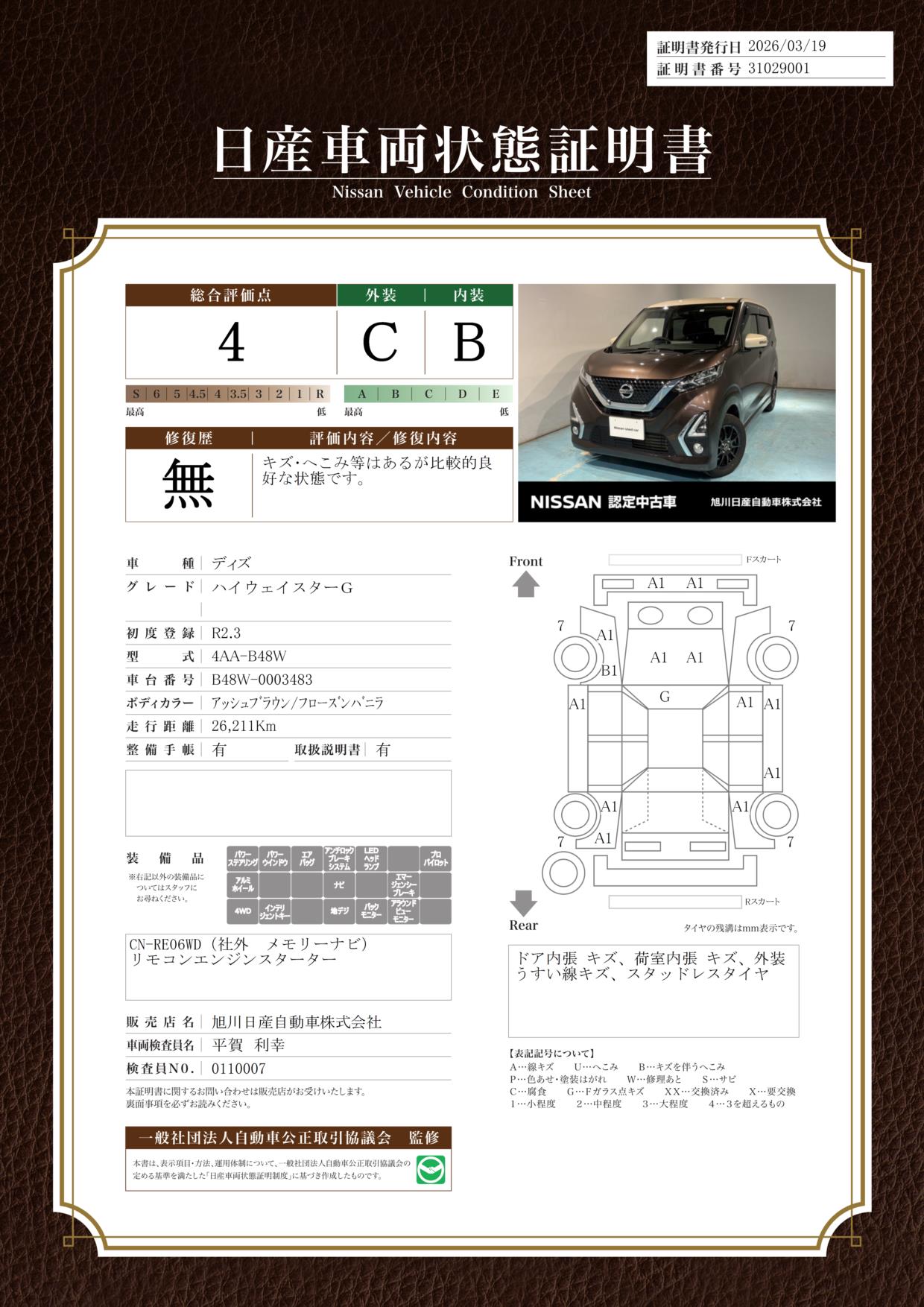 日産車両状態証明