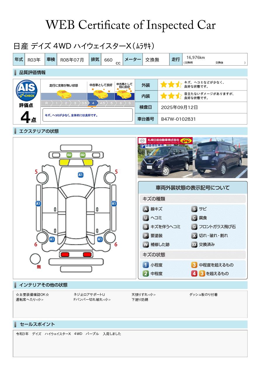 デイズ 660cc 660 ハイウェイスターX 4WD 当社試乗車アップ 衝突被害軽減ブレーキ