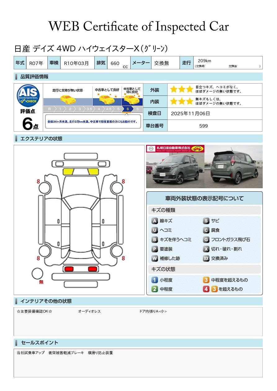デイズ 660cc 660 ハイウェイスターX 4WD 当社試乗車アップ 衝突被害軽減ブレーキ