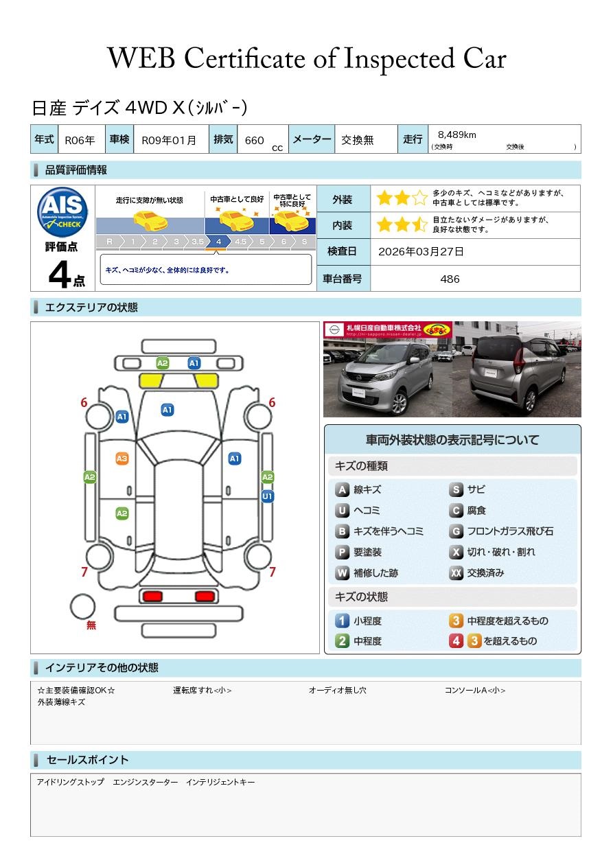 日産車はモチロンのこと 他メーカーでも軽自動車からミニバンまで幅広く展示中! 「くるまるく」店の中でもスケールの大きい店舗ですので、在庫も豊富に常時40台~60台展示中! AIS評価書付車両(第三者評価書)も多数ございますので、ご安心ください♪ 安心の日産「ワイド保証」や「自社ピット」完備! スタッフ一同お待ち申し上げております^^ 全車走行メーター管理システム導入☆(日本オートオークション協議会)