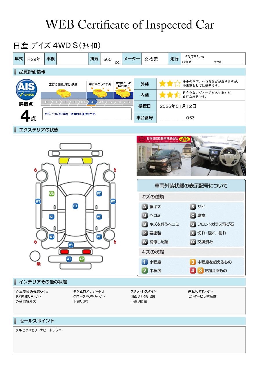 現状括弧書き内の年月まで車検有効期限が残っていますが、ご成約時に新しく車検を取り直します。なお取り直しの費用は車両価格に含まれています。