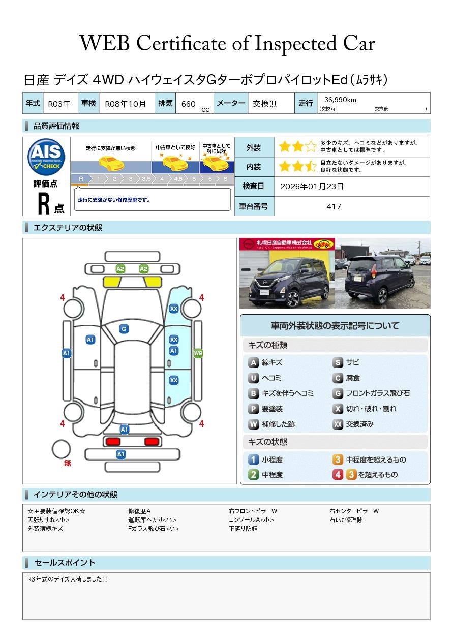 デイズ 660cc 660 ハイウェイスターX 4WD 試乗車アップ アラウンドビューモニター