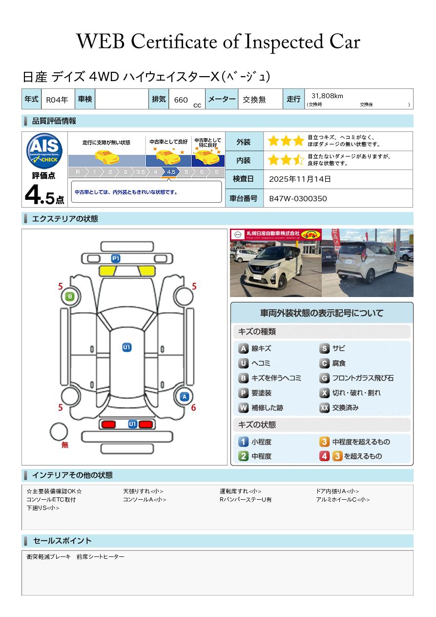 デイズ 660cc 660 ハイウェイスターX 4WD 当社試乗車アップ 衝突被害軽減ブレーキ