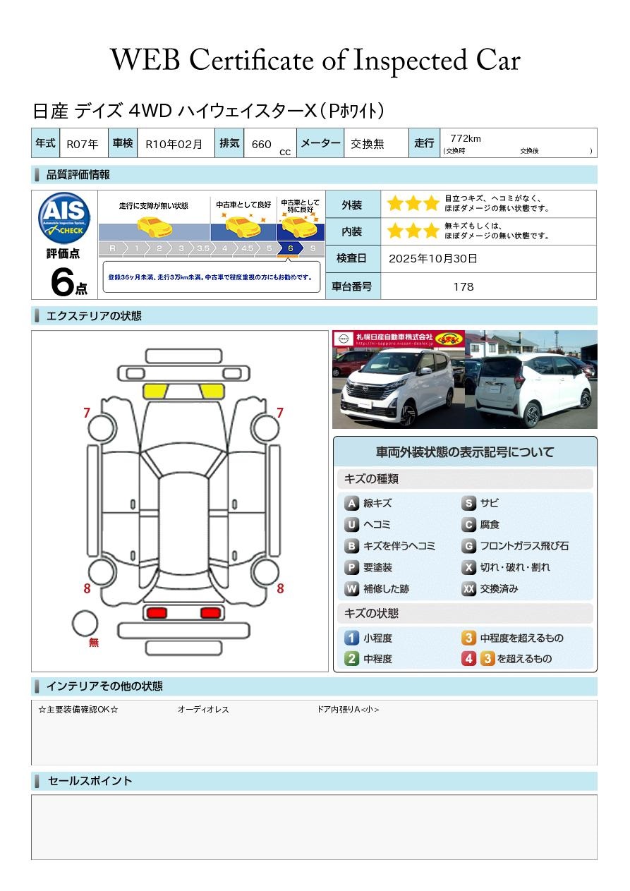 デイズ 660cc 660 ハイウェイスターX 4WD 当社試乗車アップ 衝突被害軽減ブレーキ