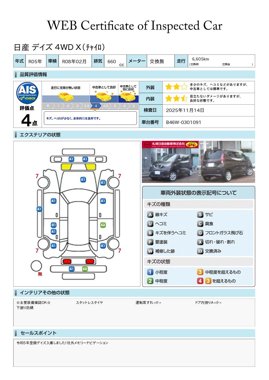 デイズ 660cc 660 ハイウェイスターX 4WD 当社試乗車アップ 衝突被害軽減ブレーキ