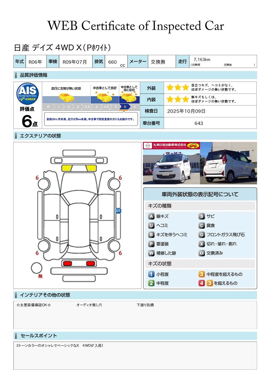 デイズ 660cc 660 ハイウェイスターX 4WD 当社試乗車アップ 衝突被害軽減ブレーキ