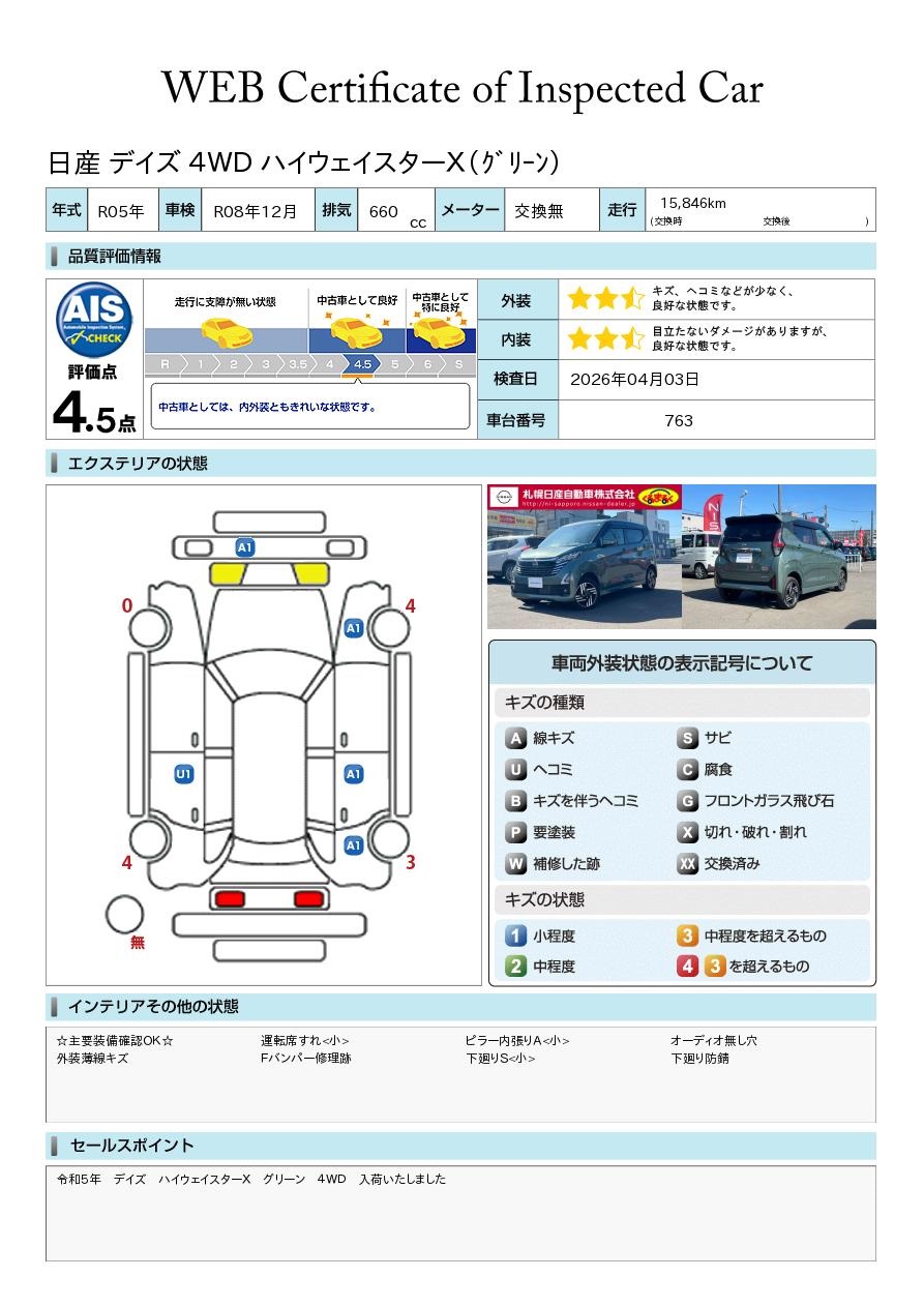 令和5年 デイズ ハイウェイスターX グリーン 4WD 入荷いたしましたアラウンドビュモニター ステアリングヒーター エマージェンシーブレーキ 車線逸脱警報 LED