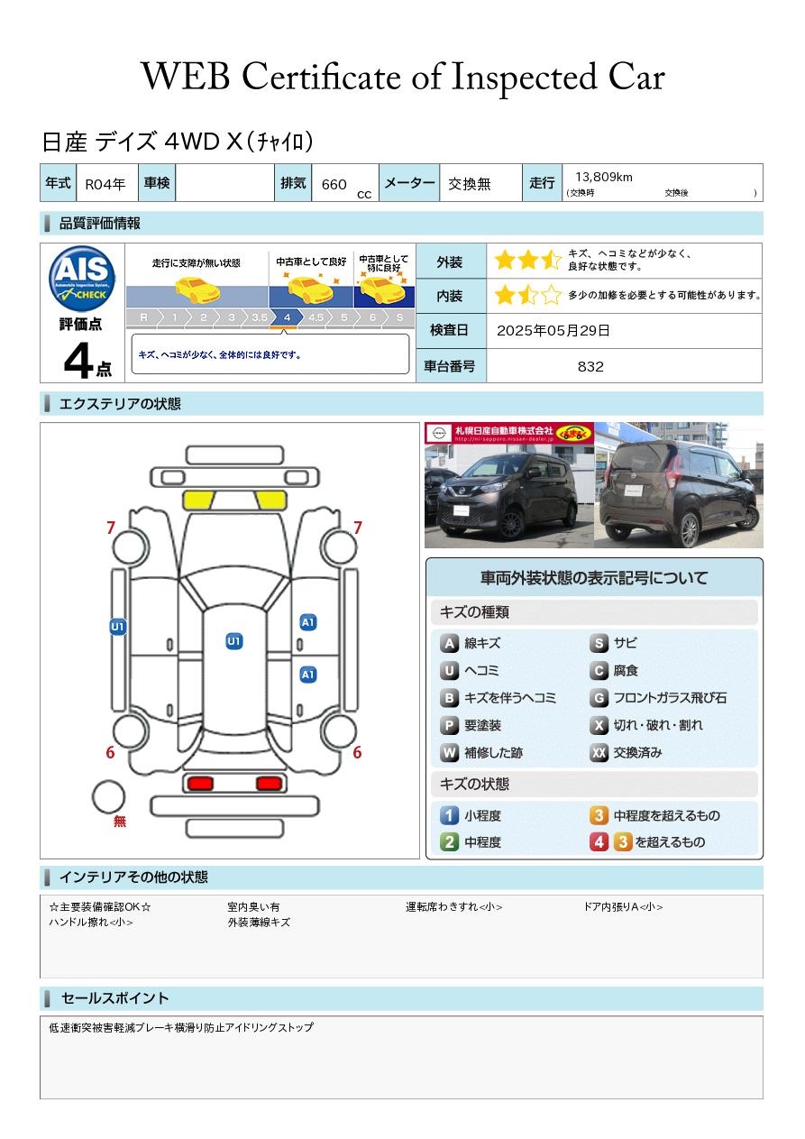 デイズ 660cc 660 X 4WD 低速衝突被害軽減ブレーキ