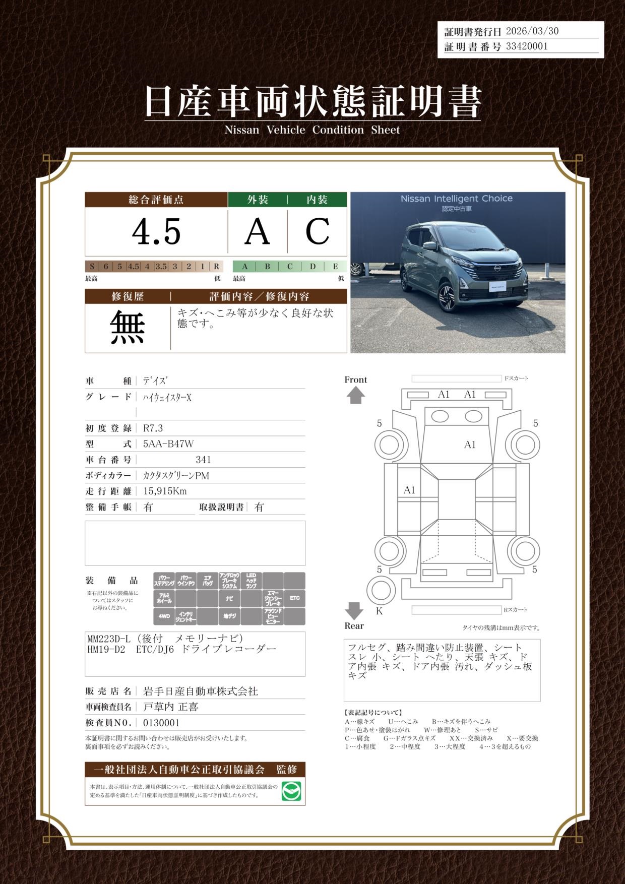 「おでかけが、もっと楽しくなる軽。」の日産デイズ!寒冷地仕様車、アラウンドビューモニター、ドライブレコーダー、ETC、LEDヘッドフロントフォグ!