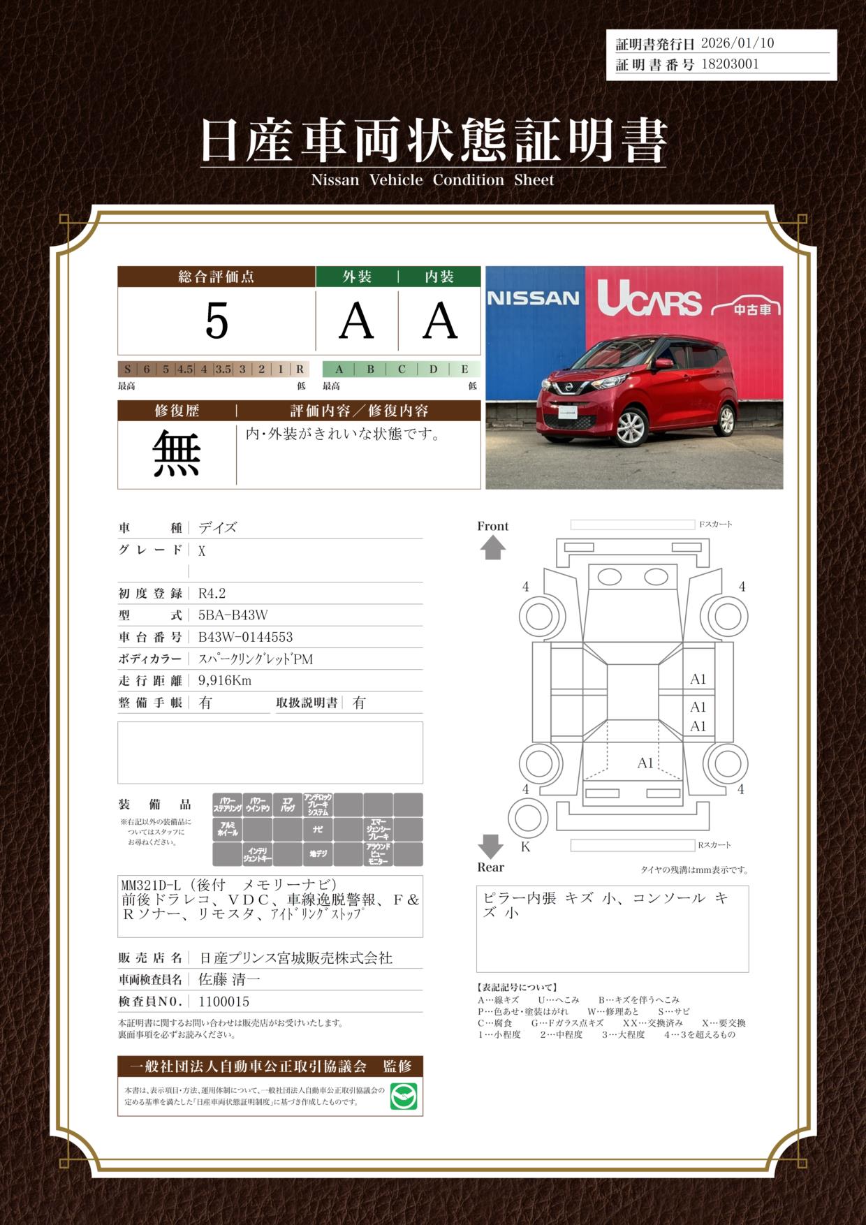 日産自動車認定の中古車販売店です。