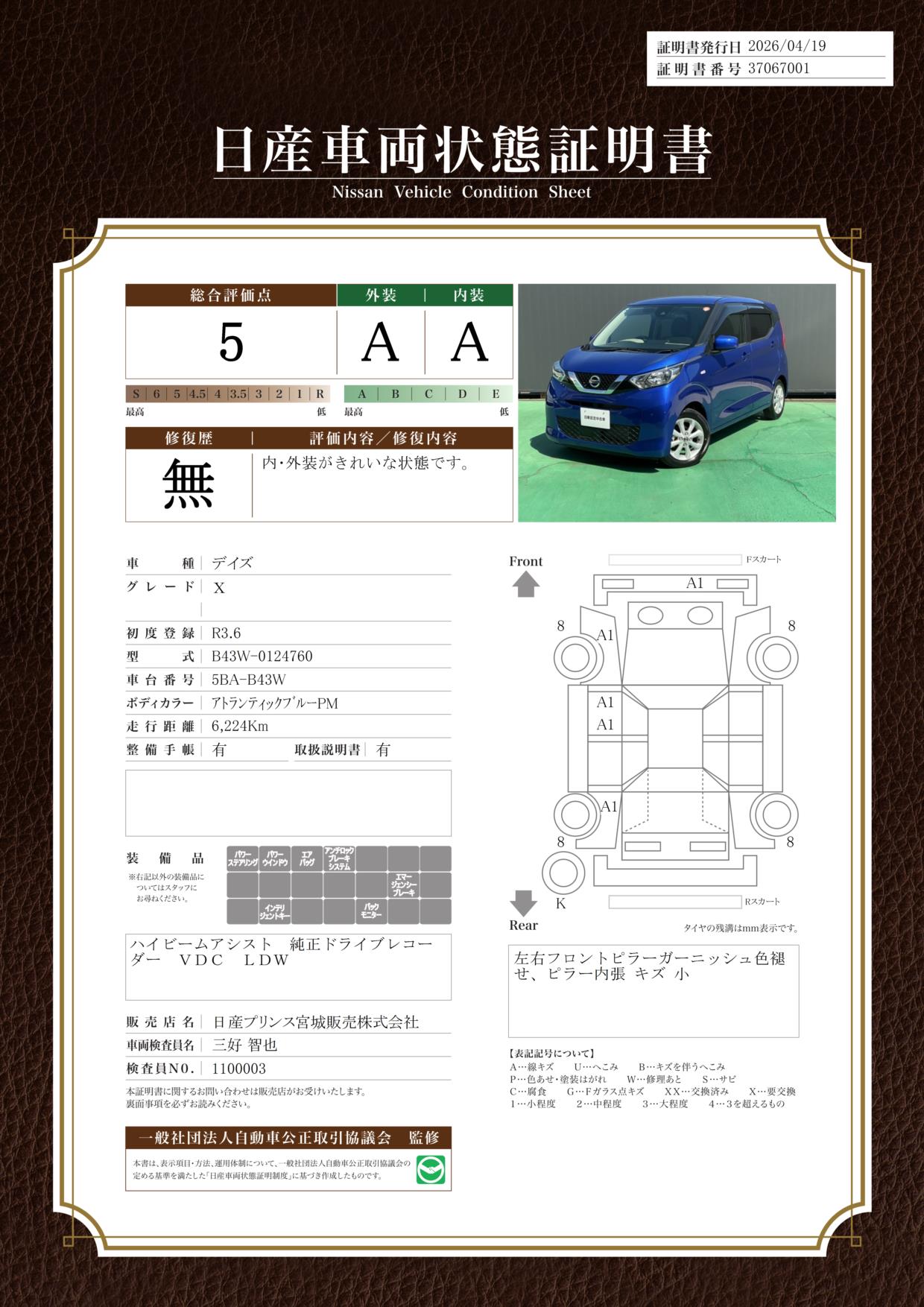 現状括弧書き内の年月まで車検有効期限が残っていますが、ご成約時に新しく車検を取り直します。なお取り直しの費用は車両価格に含まれています。