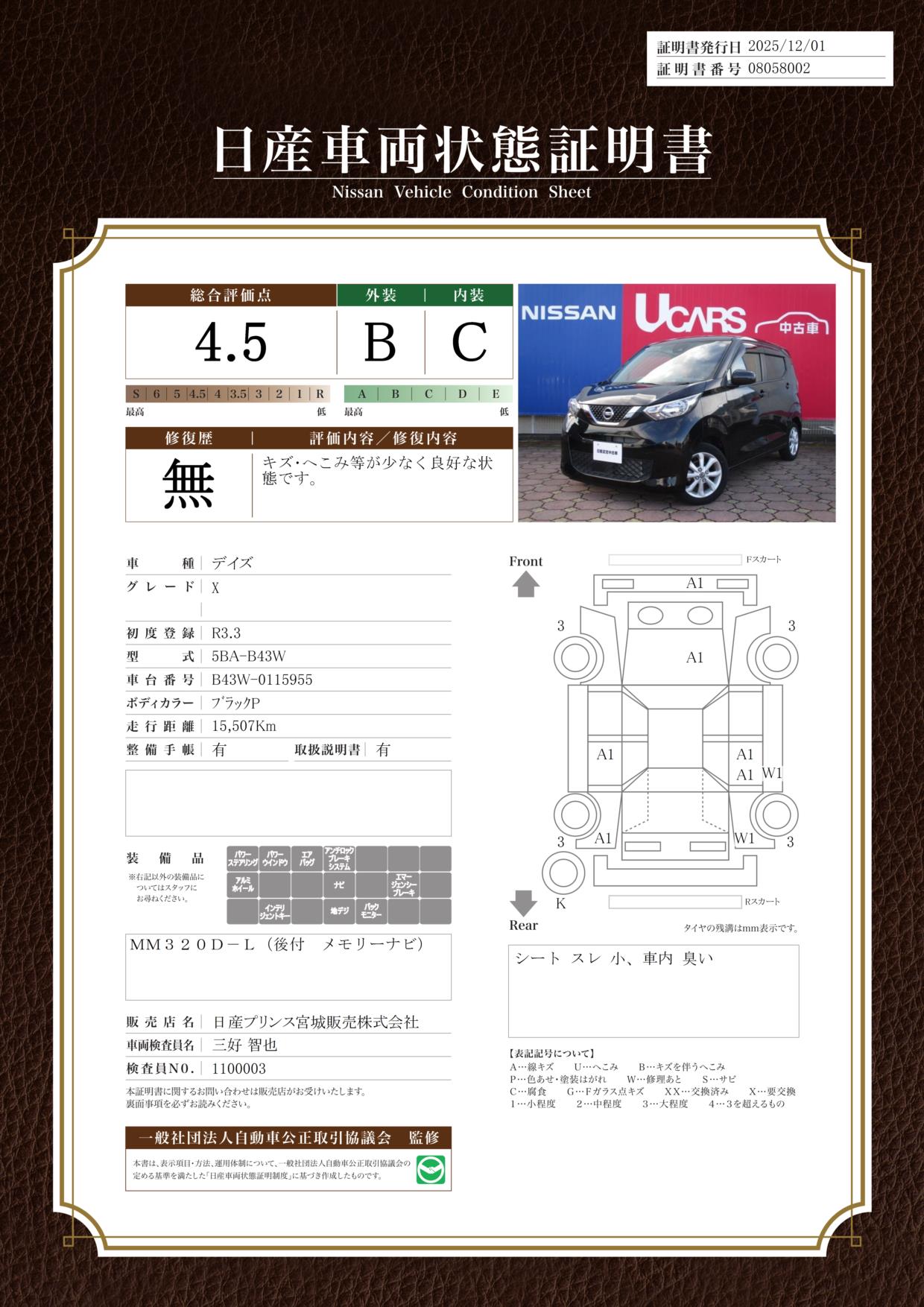 安心の全車日産ワイド保証付!プラス2年の延長保証もあります(走行無制限)♪ プレミアム認定中古車&日産認定中古車を多数取り揃えております。 自動車保険見積り(無料診断)、JAF、日産会員、クレジット販売 頭金なし~最長72回までOK!金利5.9%(固定)実施中! ◇全展示車クリーニング、ビニールシートカバー、紙マット、ハンドルカバーを徹底しております◇ 女性スタッフもおりますので、お一人様でのご来店でもお気軽にお越しください。 ※地下鉄東西線 「卸町駅」下車、徒歩5分