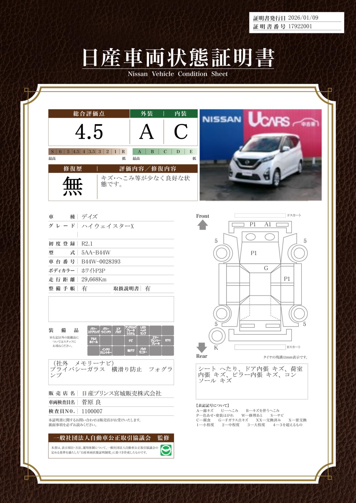 車検が令和9年1月まで☆日産の“デイズ”入庫しました☆●フローティングナビ●ETC●バックカメラ●LEDヘッドライト●お問い合わせお待ちしております●
