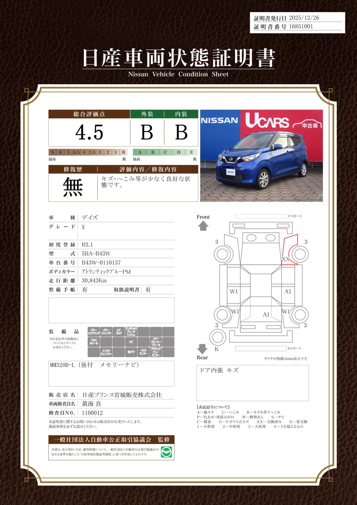 デイズ 660cc 660 X 純正デカナビ Bluetooth バックモニター
