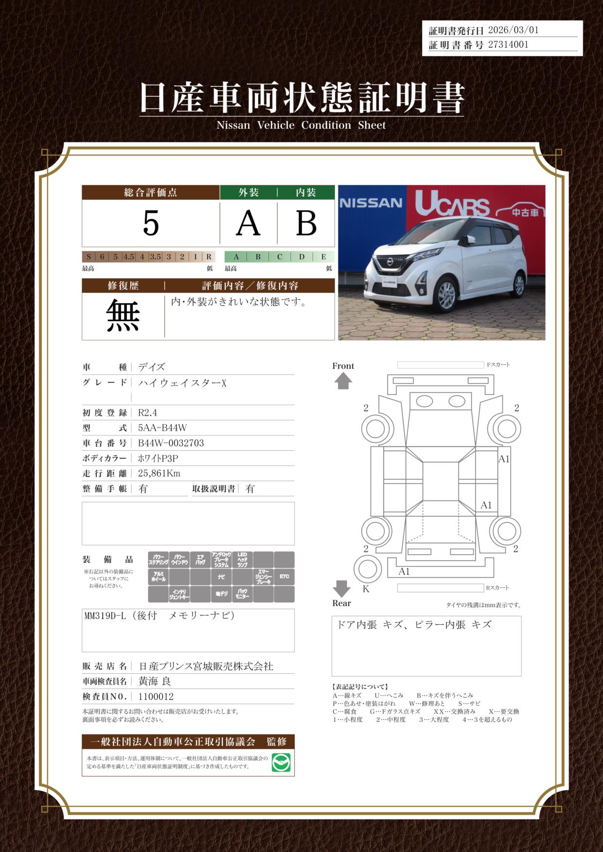 車両状態証明書を見る