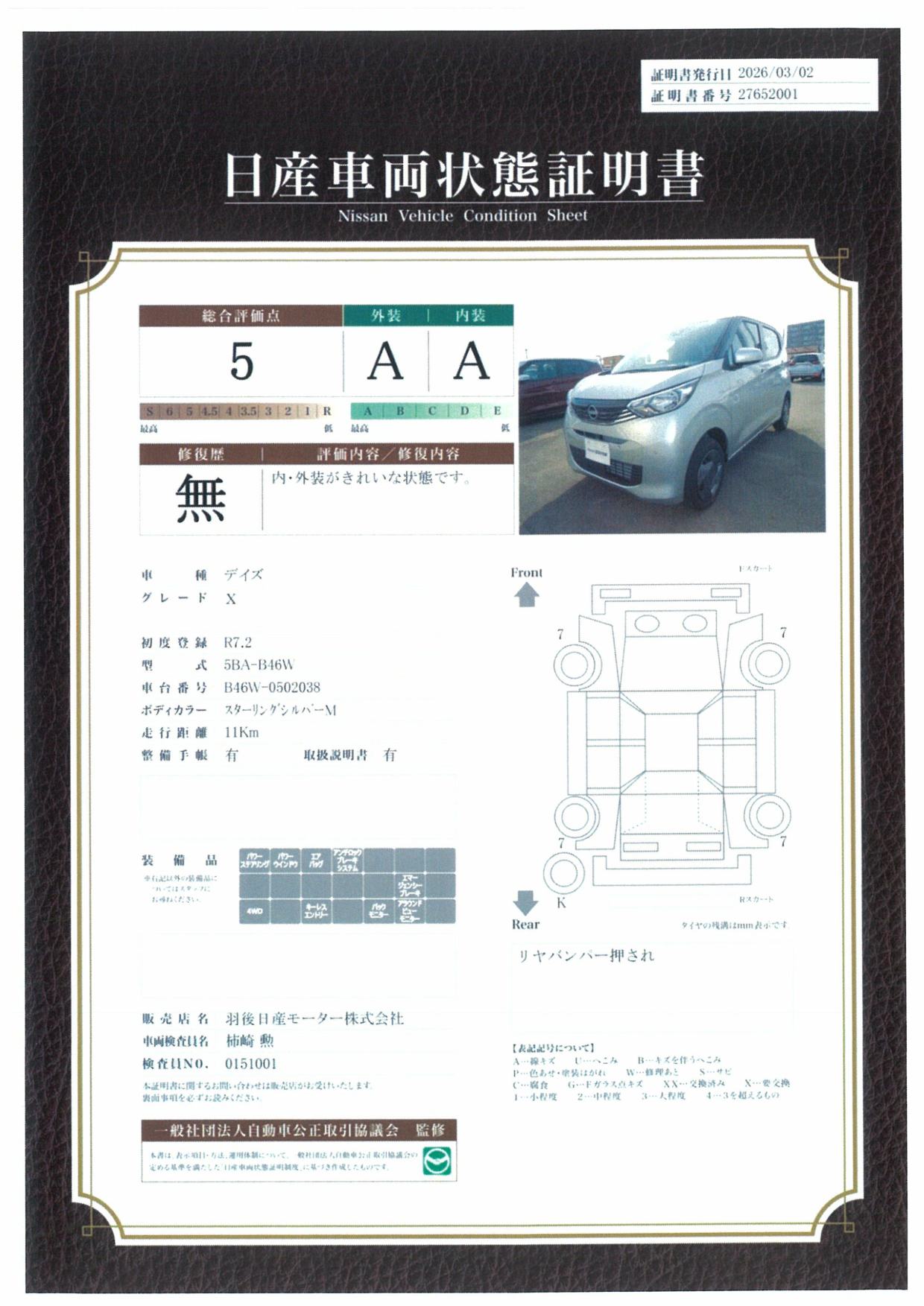 「車両状態証明書」は、査定協会監修のプロの検査員が公正かつ確かな基準で検査した”安心の証”です。