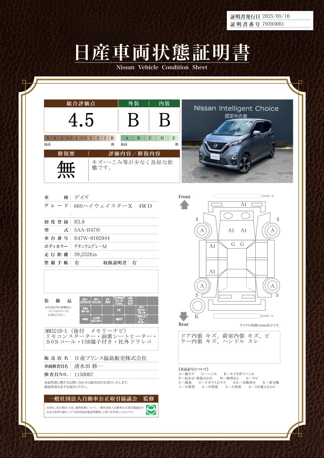 デイズ 660cc 660 X 純正ナビ 衝突被害軽減ブレーキ