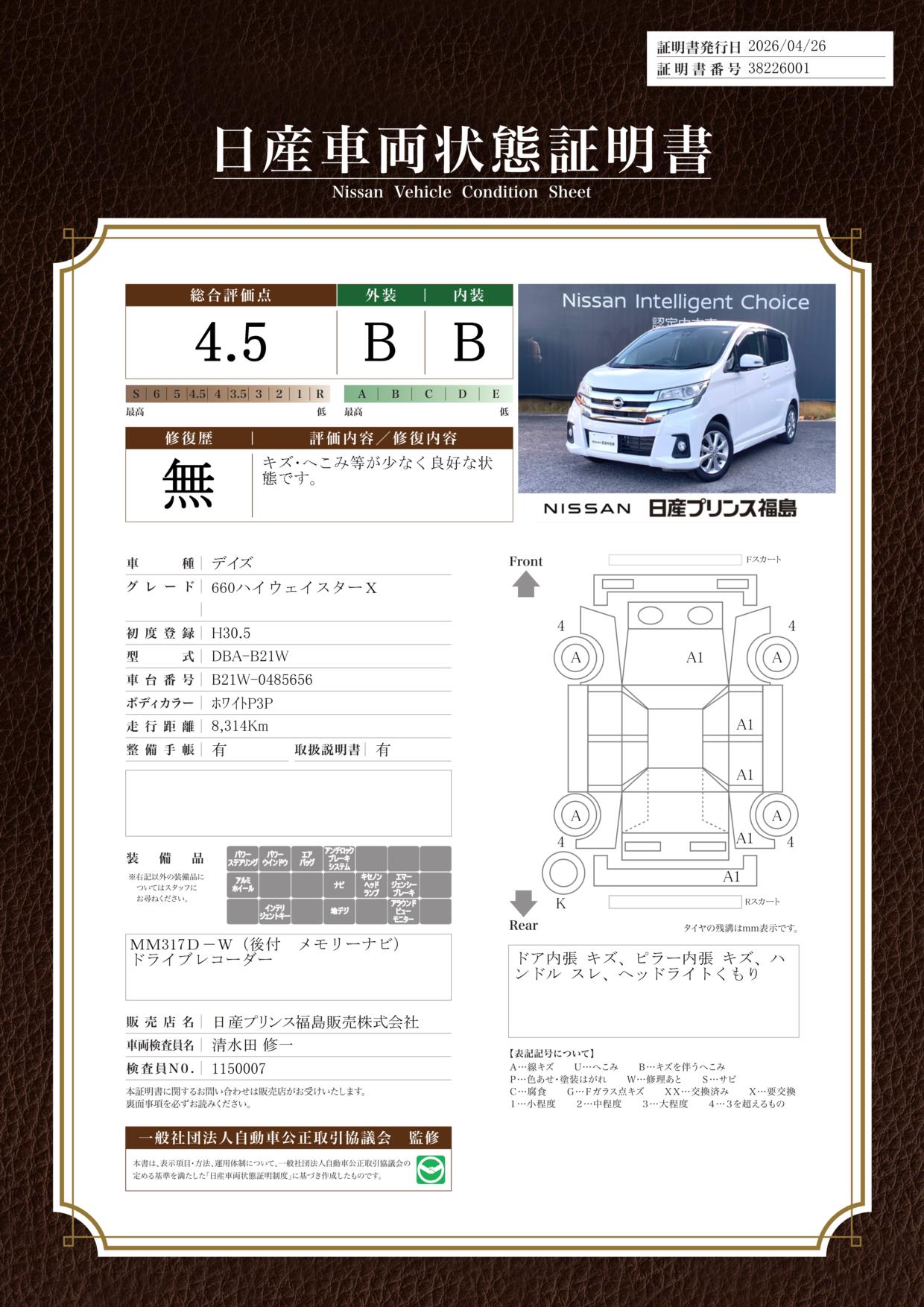 日産車両状態証明