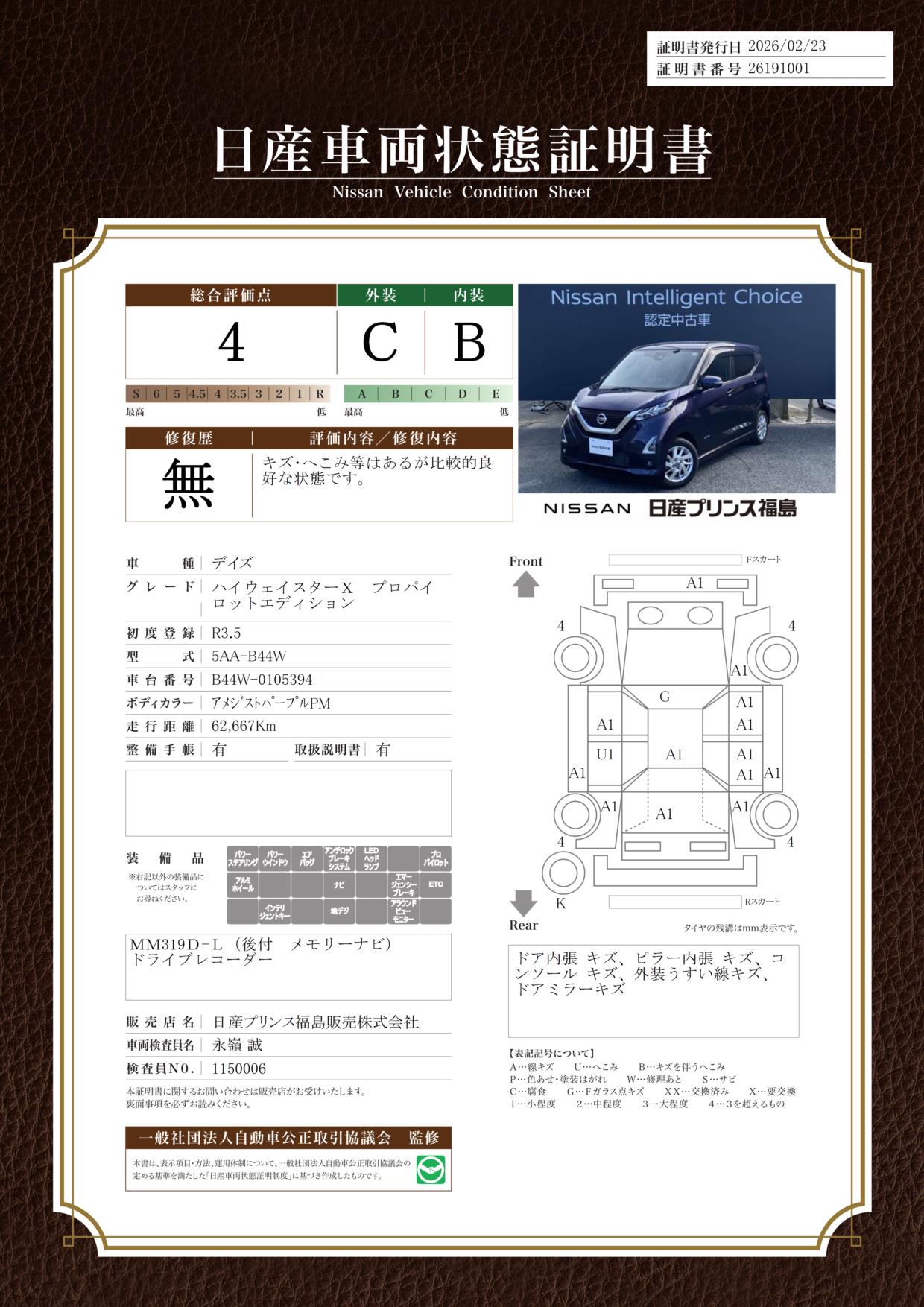 現状括弧書き内の年月まで車検有効期限が残っていますが、ご成約時に新しく車検を取り直します。なお取り直しの費用は車両価格に含まれています。