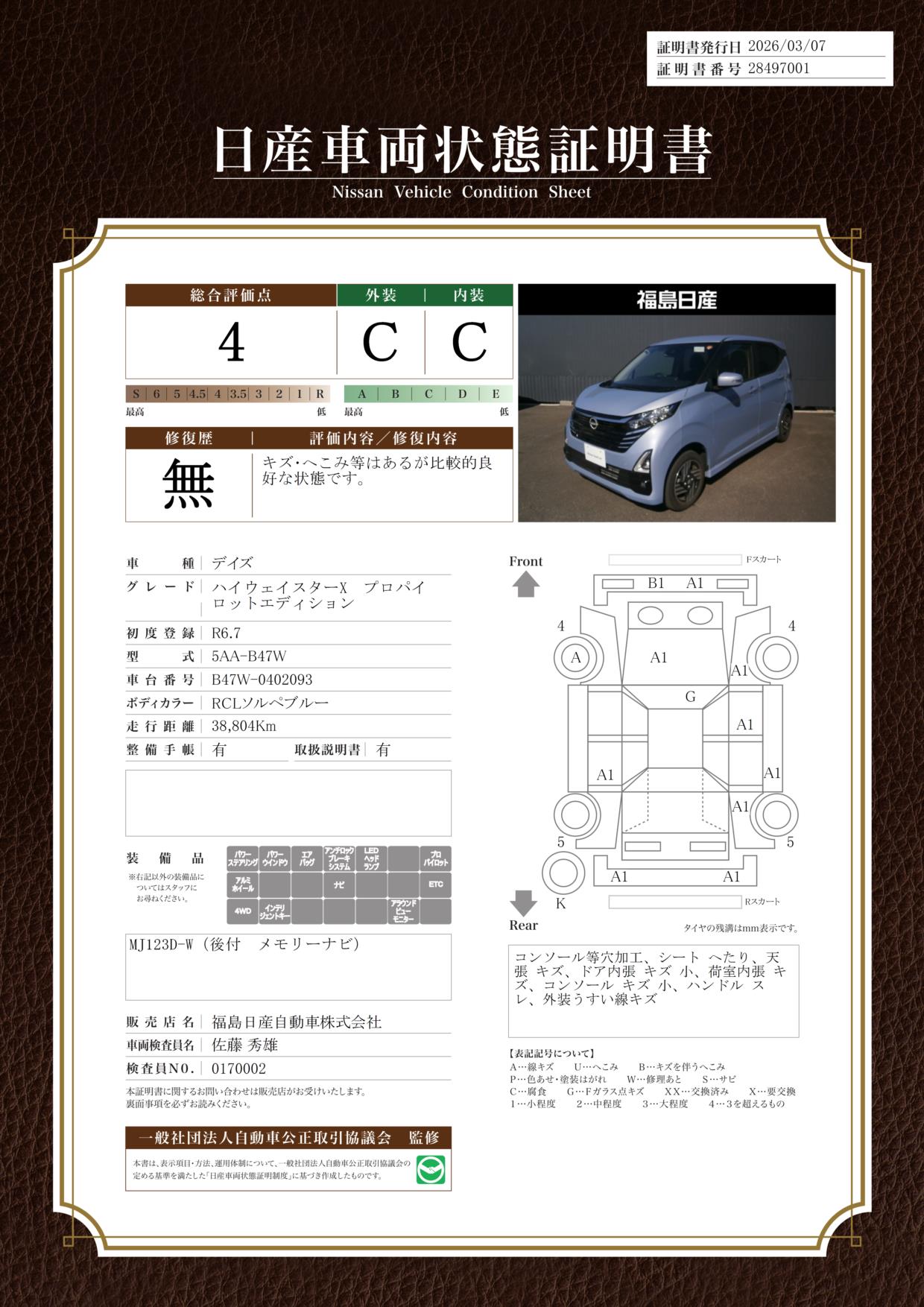 日産車両状態証明